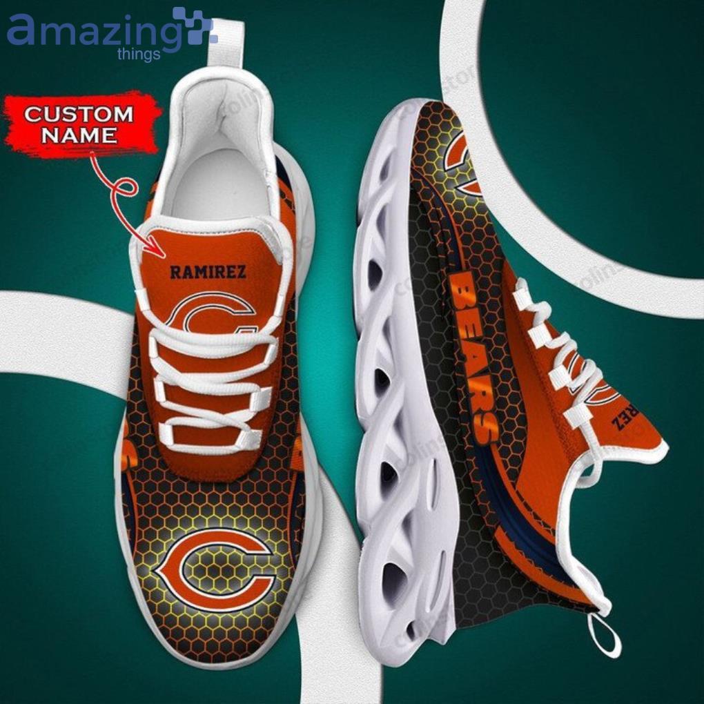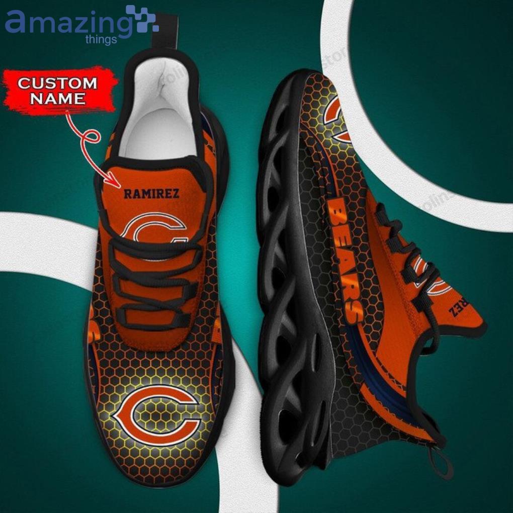 Some of the NFL Chicago Bears Custom Name Orange Black Golden Hole Max Soul Shoes Gift For Fans Sport photos