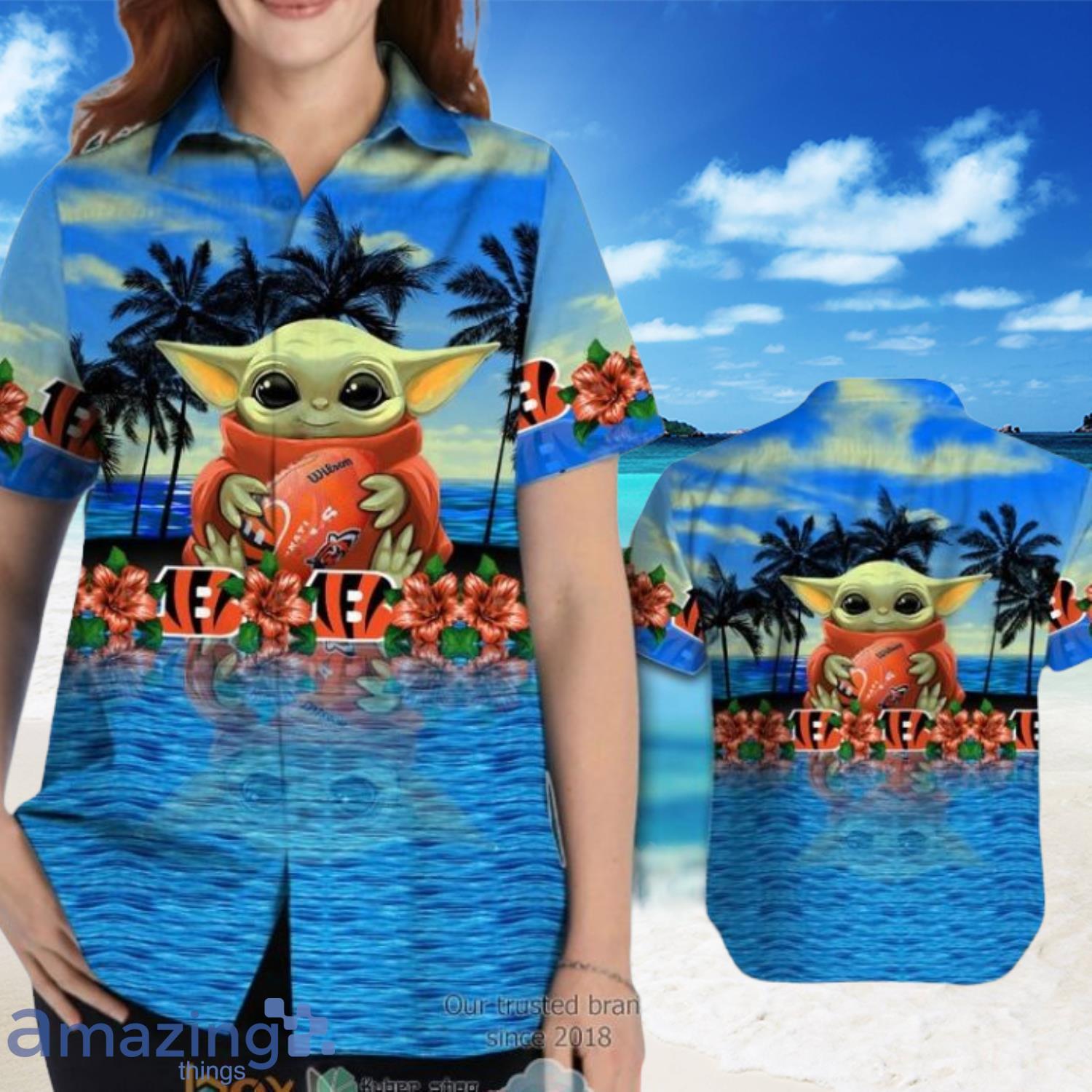NFL Cincinnati Bengals Baby Yoda And Blue Beach Short Sleeve Hawaiian Shirt Details:
