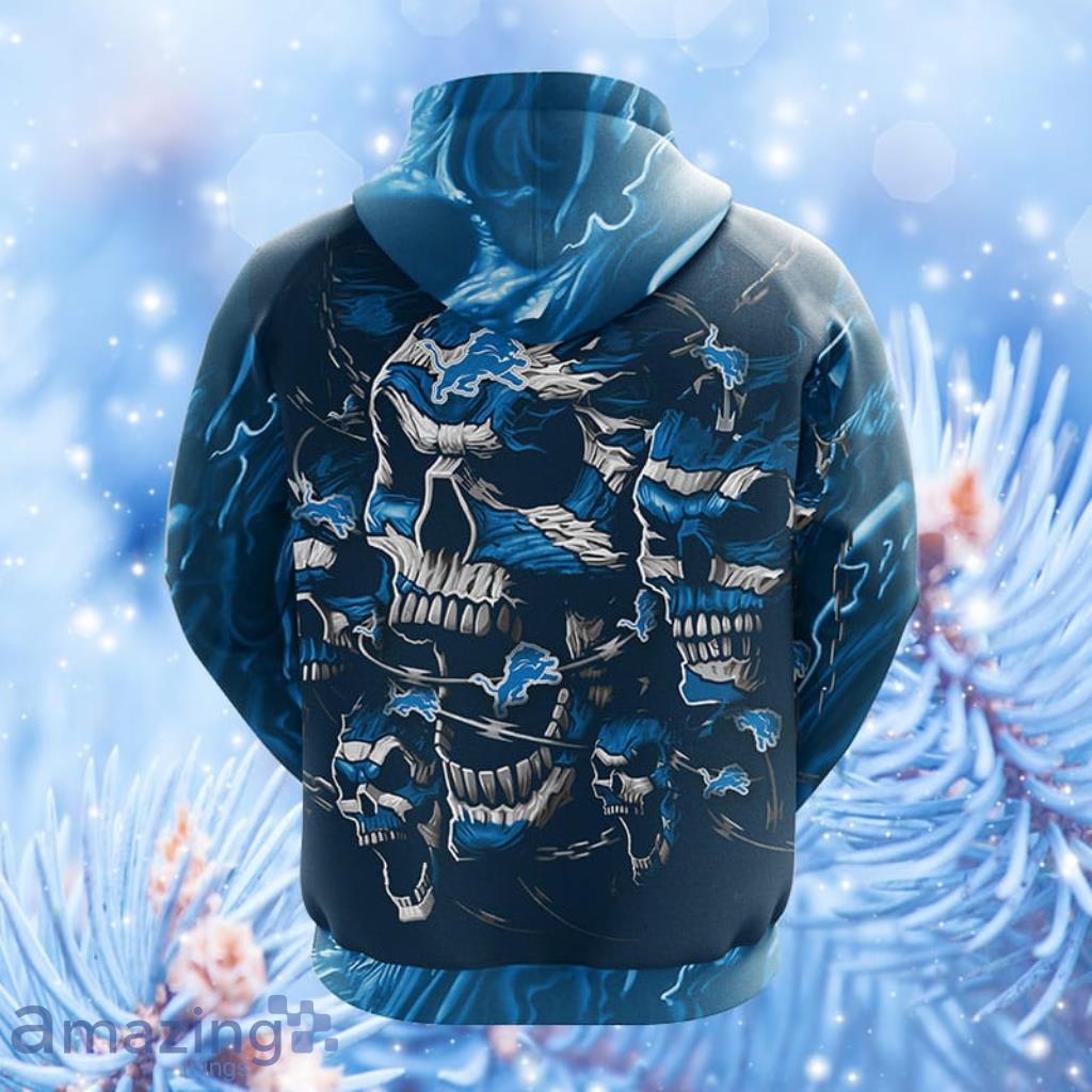 NFL Detroit Lions Skull Funny Blue Hoodie, Zip Hoodie 3D All Over Print For Fans