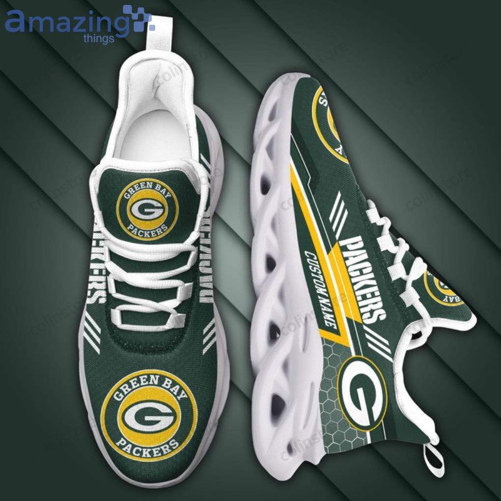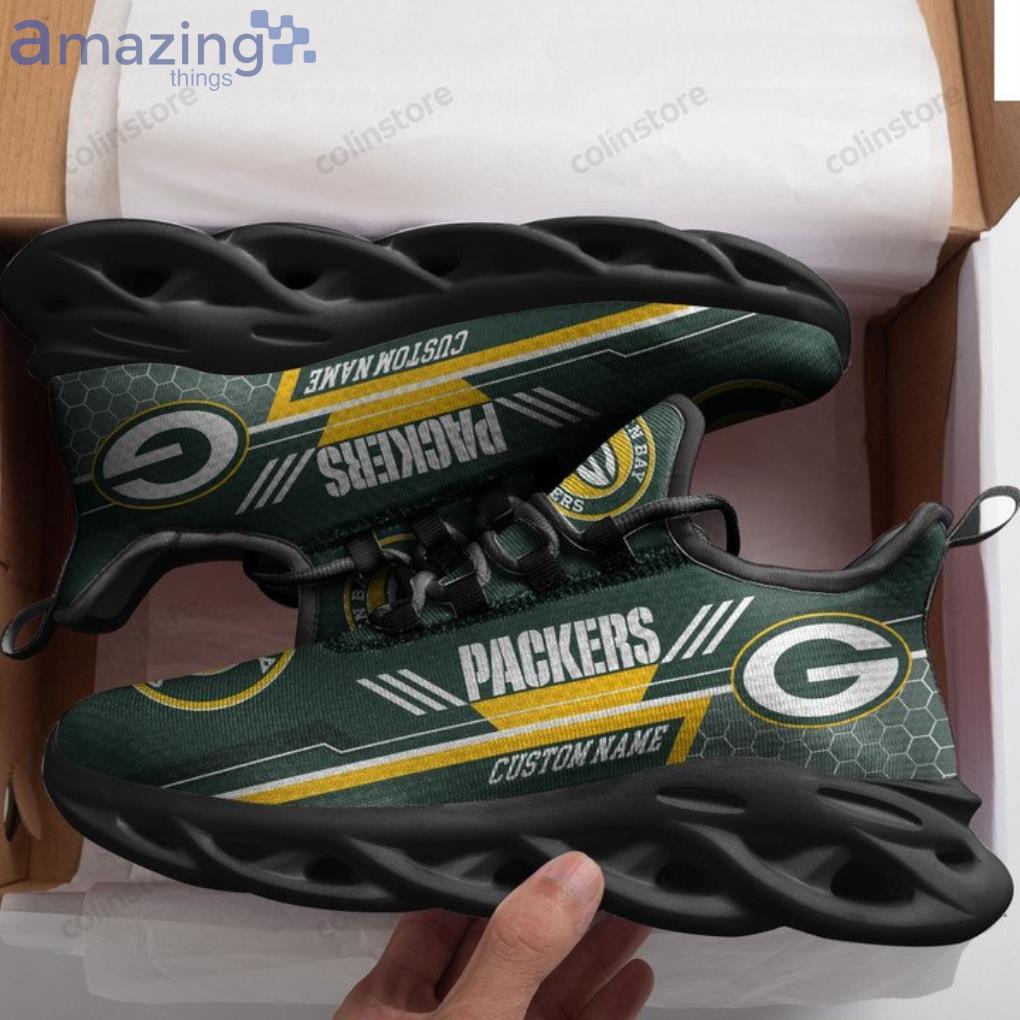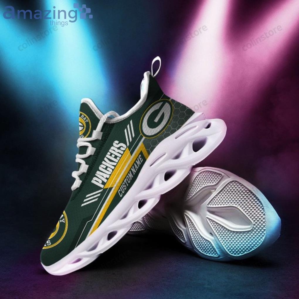 NFL Green Bay Packers Custom Name Green White Stripes Yellow Max Soul Shoes Gift For Fans Sport