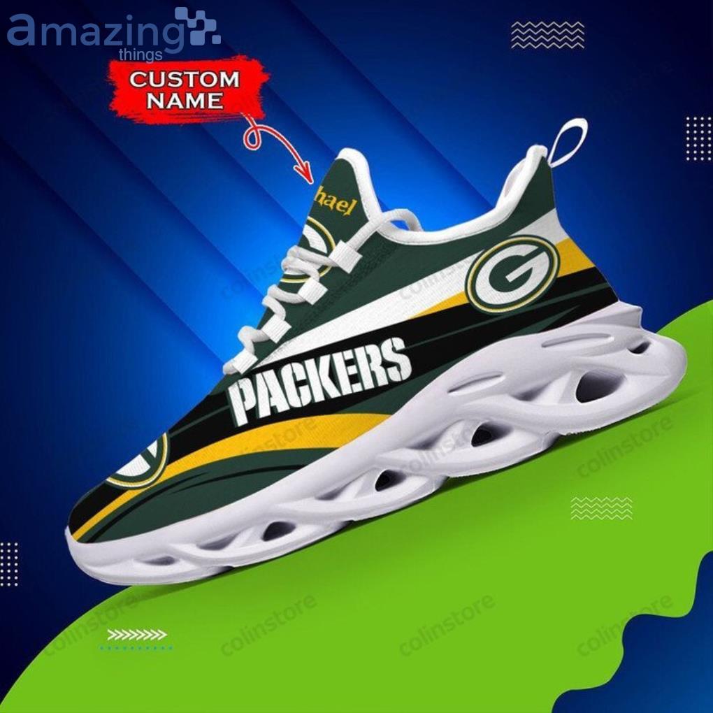 NFL Green Bay Packers Custom Name Green White Yellow Curve Max Soul Shoes Gift For Fans Sport information: