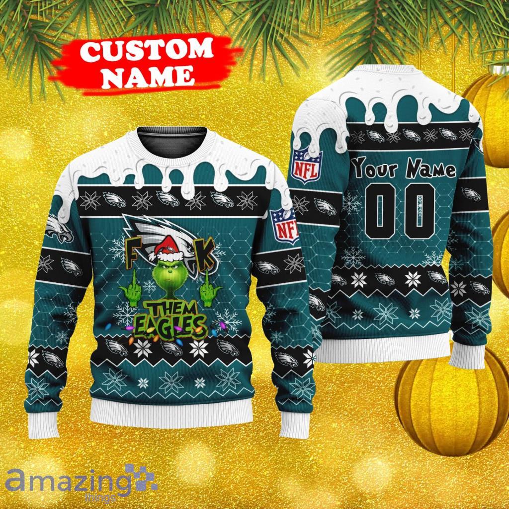 NFL Grinch Fuck Them Philadelphia Eagles Personalized Name And Number Ugly Xmas Sweater Christmas Gift Informations: