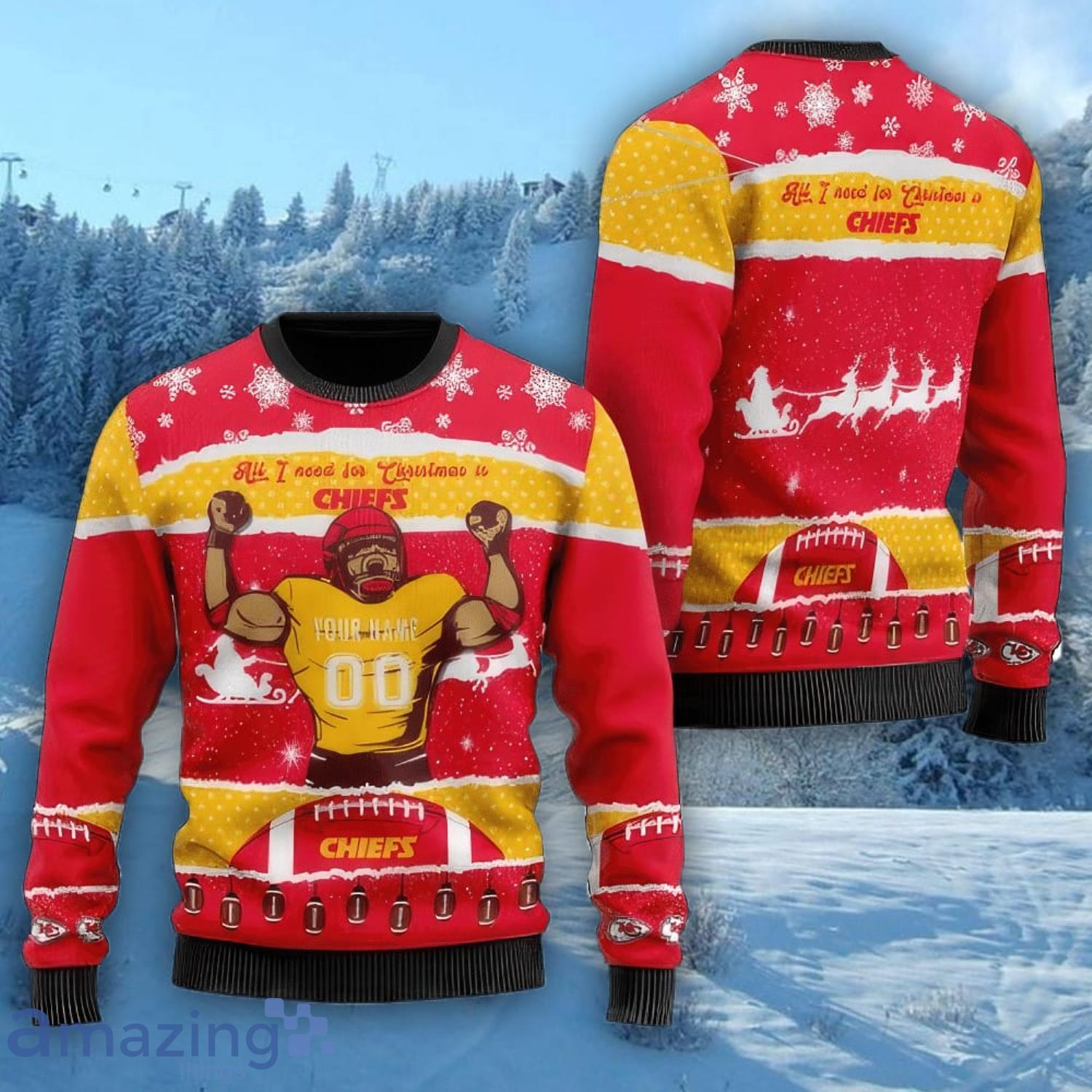 NFL Kansas City Chiefs Custom Name And Number 3D Ugly Christmas Sweater Christmas Gift For Sport Fans Information