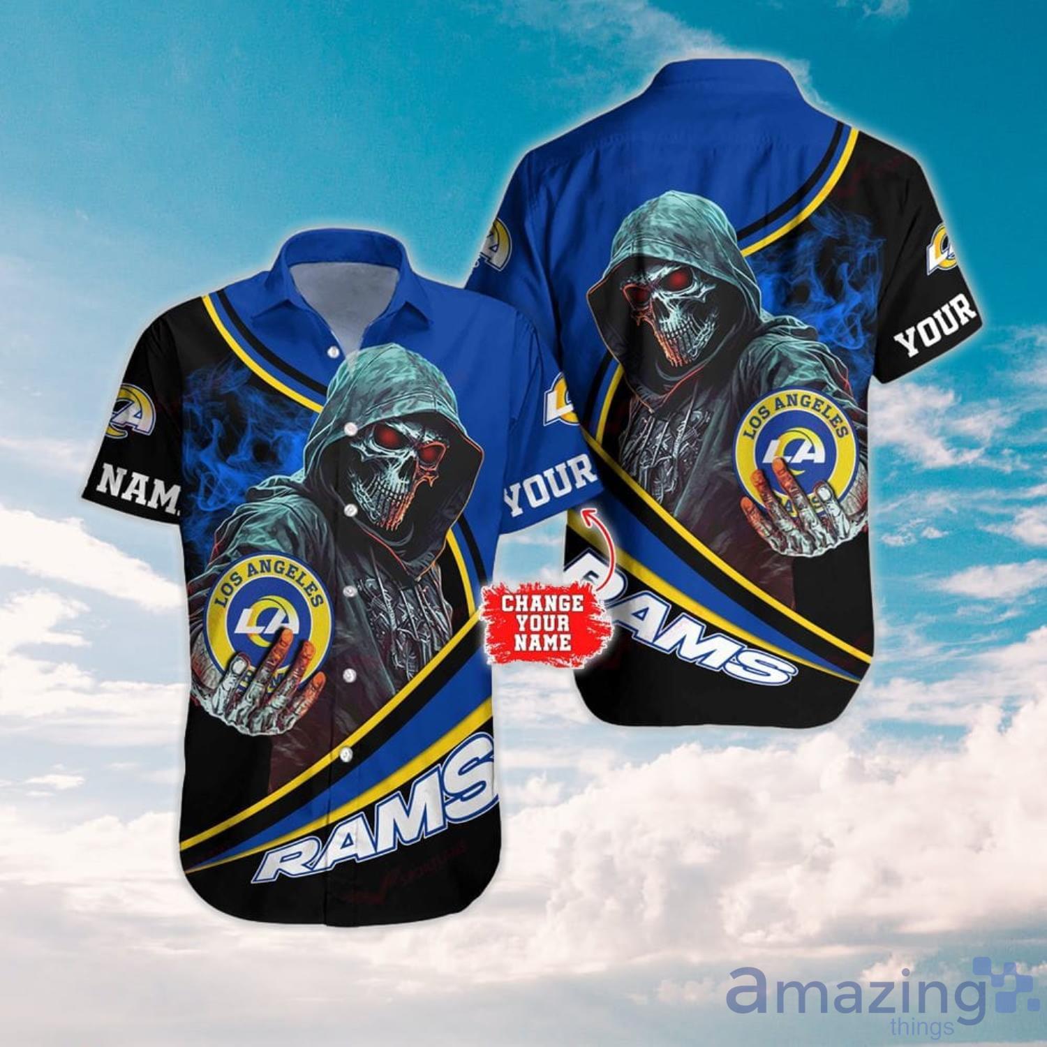 Get ready to show off your team spirit with the NFL Los Angeles Rams Hawaiian Shirt Custom Name Halloween Skull Gift For Sport Fans! This unique and eye-catching shirt is designed for true football enthusiasts who want to stand out from the crowd.
