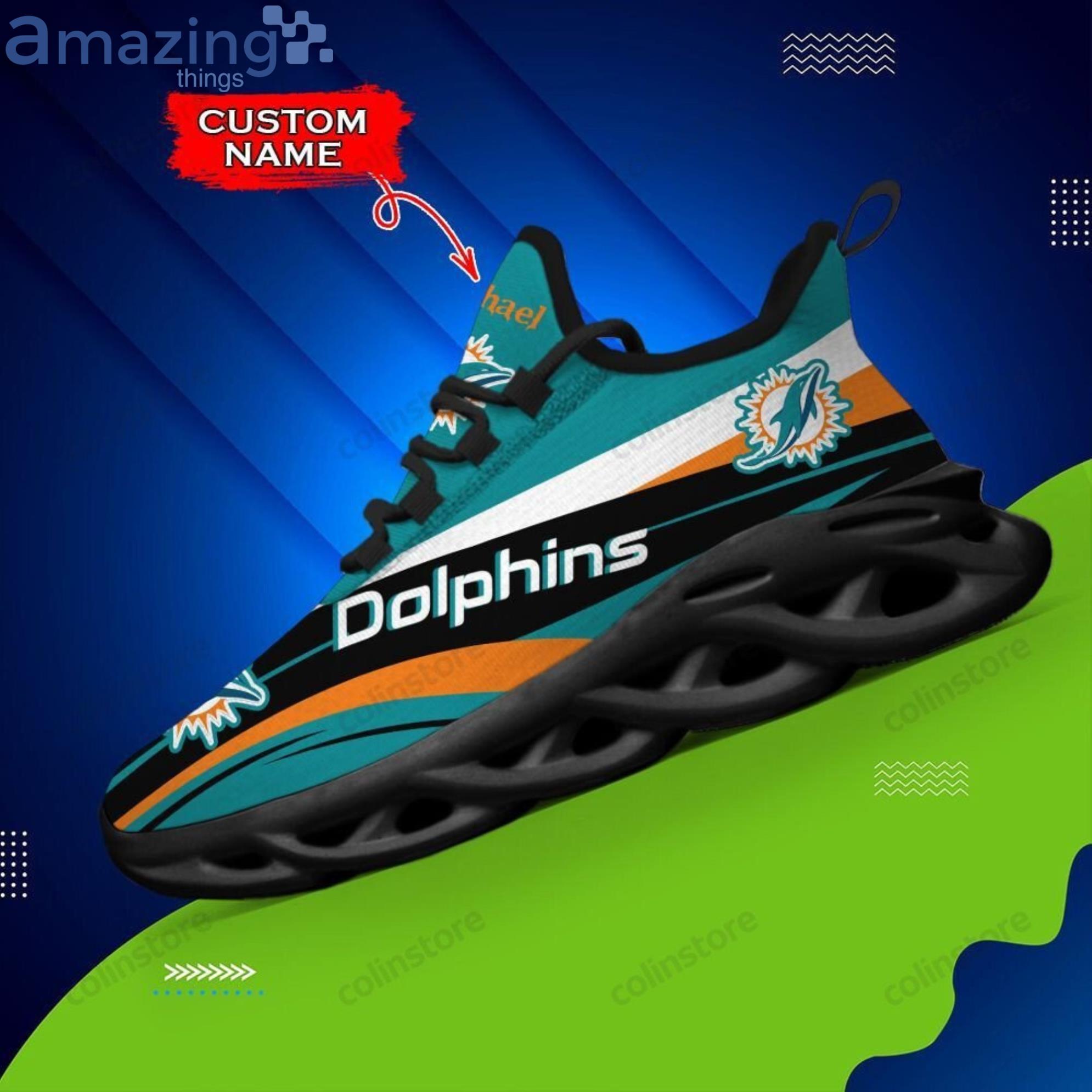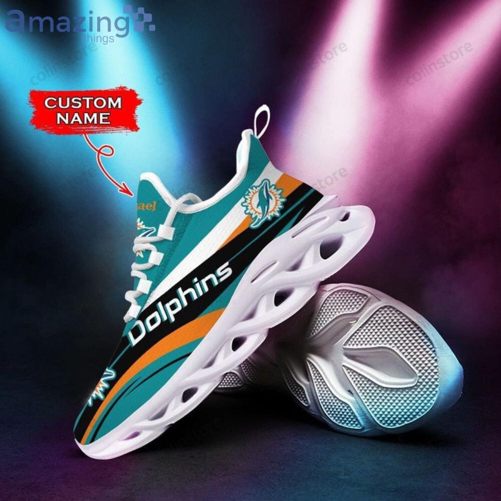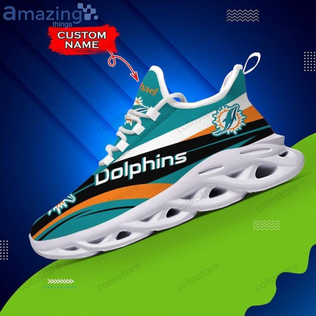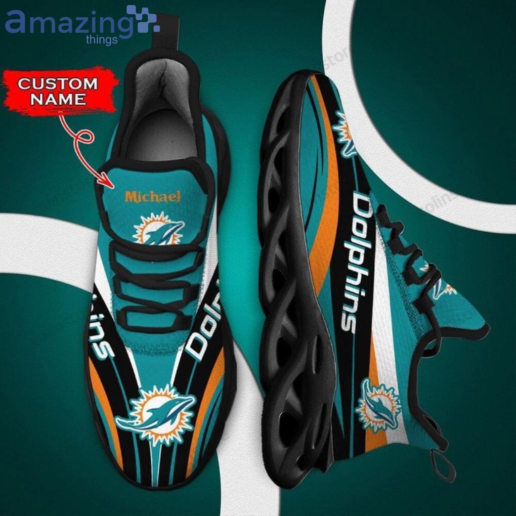 Some of the NFL Miami Dolphins Custom Name Aqua Black Max Soul Shoes Gift For Fans Sport photos