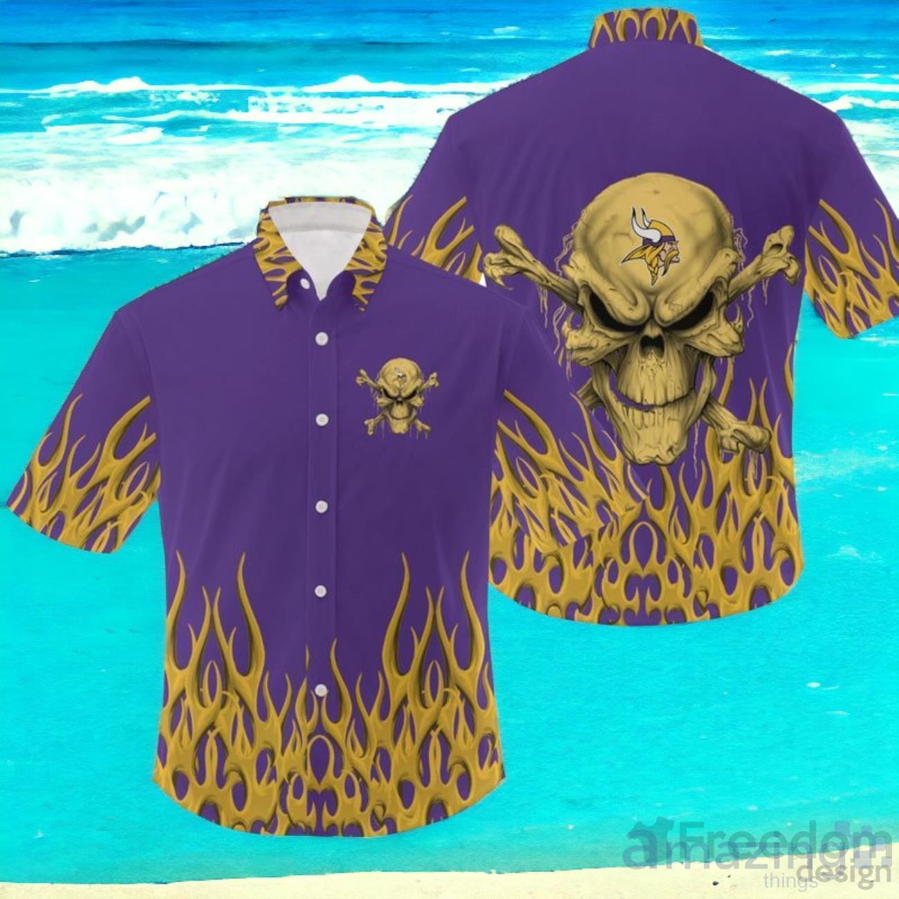 Get ready to show off your team spirit with our NFL Minnesota Vikings Skull Hawaiian Shirt! This brand new design is perfect for die-hard fans who want to stand out from the crowd. Made with high-quality materials, this shirt is not only comfortable but also durable, ensuring that it will last through countless game days. The vibrant print features the iconic Vikings logo, blended seamlessly with a cool skull design, giving it a unique and edgy twist. Whether you’re tailgating or watching the game from home, this shirt is guaranteed to make a bold statement. Don’t miss out on the opportunity to showcase your love for the Vikings in style. Order your NFL Minnesota Vikings Skull Hawaiian Shirt today and be the envy of every fan!