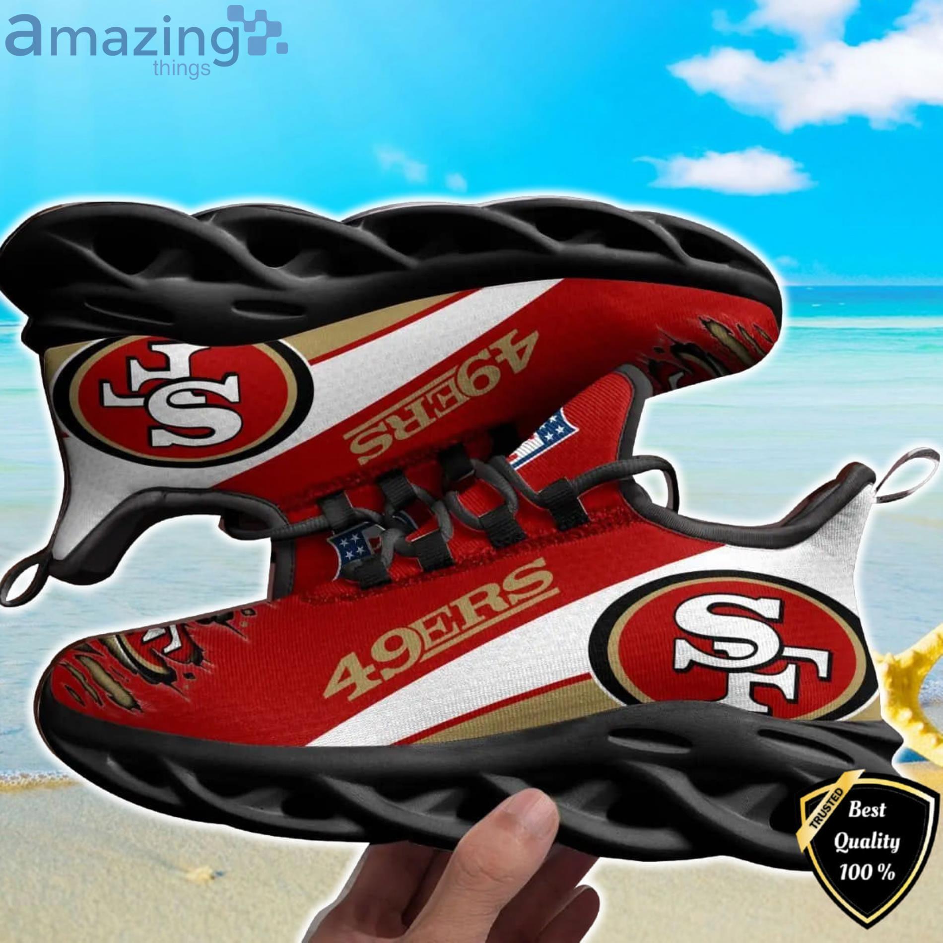 Some of the NFL San Francisco 49ers Red White Golden Curve Max Soul Shoes Gift For Fans Sport photos