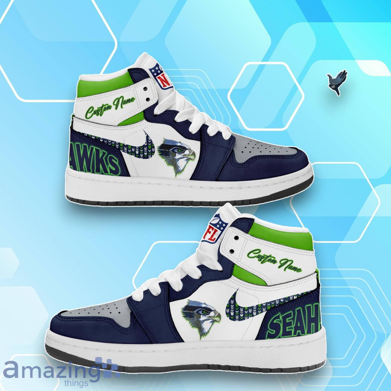 But what truly sets these shoes apart is the option to customize them with your own name. With the NFL Seattle Seahawks Air Jordan Hightop Shoes Custom Name, you can proudly display your own personal touch, making these shoes a one-of-a-kind piece that truly represents your unwavering support for your favorite team.
