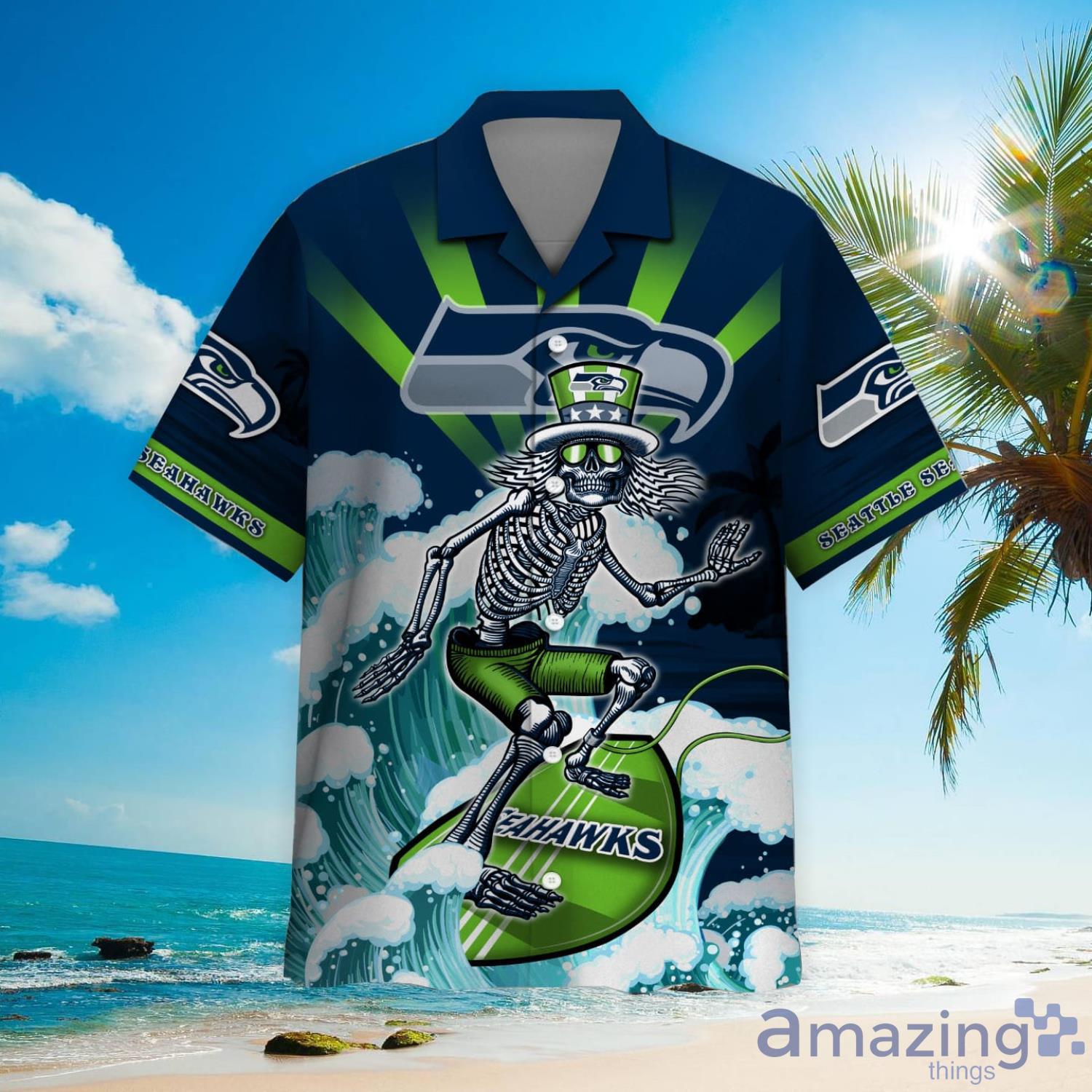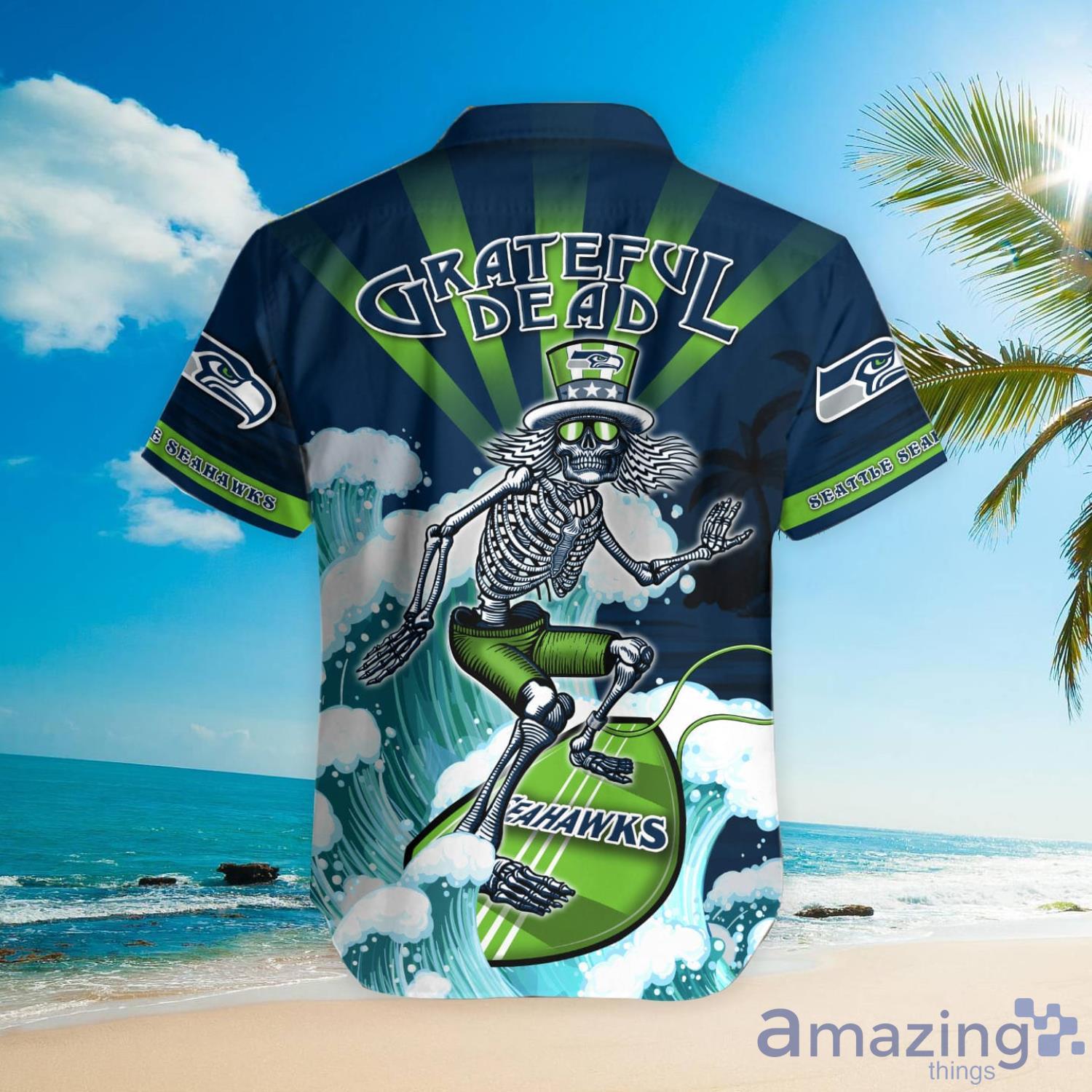 NFL Seattle Seahawks Grateful Dead Hawaiian Shirt Details: