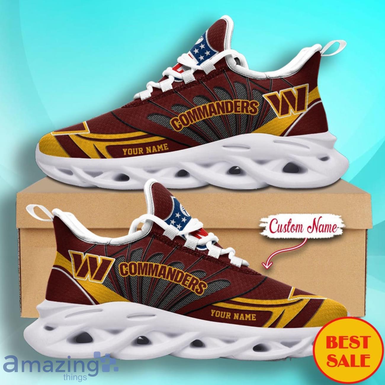 NFL Washington Commanders Max Soul Shoes Custom Name Football Shoes Sports