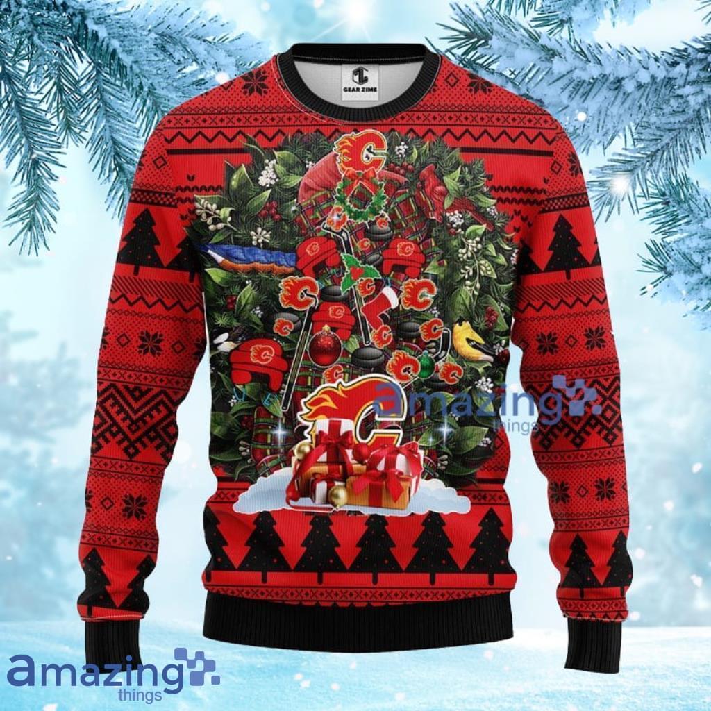 Featuring a unique design that combines the iconic Flames logo with a festive Christmas tree, this sweater is a true showstopper. The vibrant team colors and intricate detailing perfectly capture the spirit of the season while showcasing your unwavering support for your favorite NHL team.