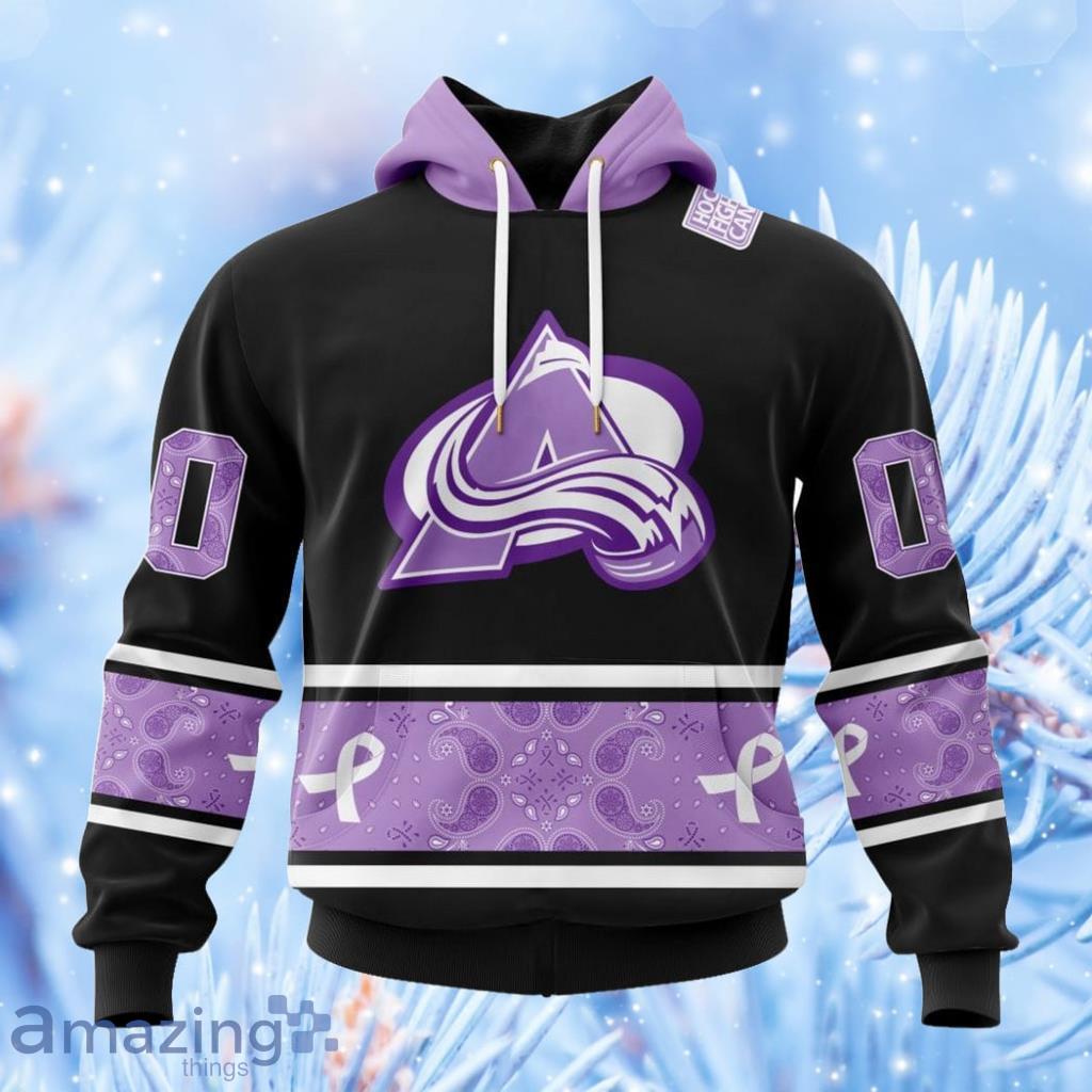 Some of the Nhl Colorado Avalanche Special Black And Lavender Hockey Fight Cancer Design Personalized Hoodie 3D All Over Print Attract Gift For Men And Women photos