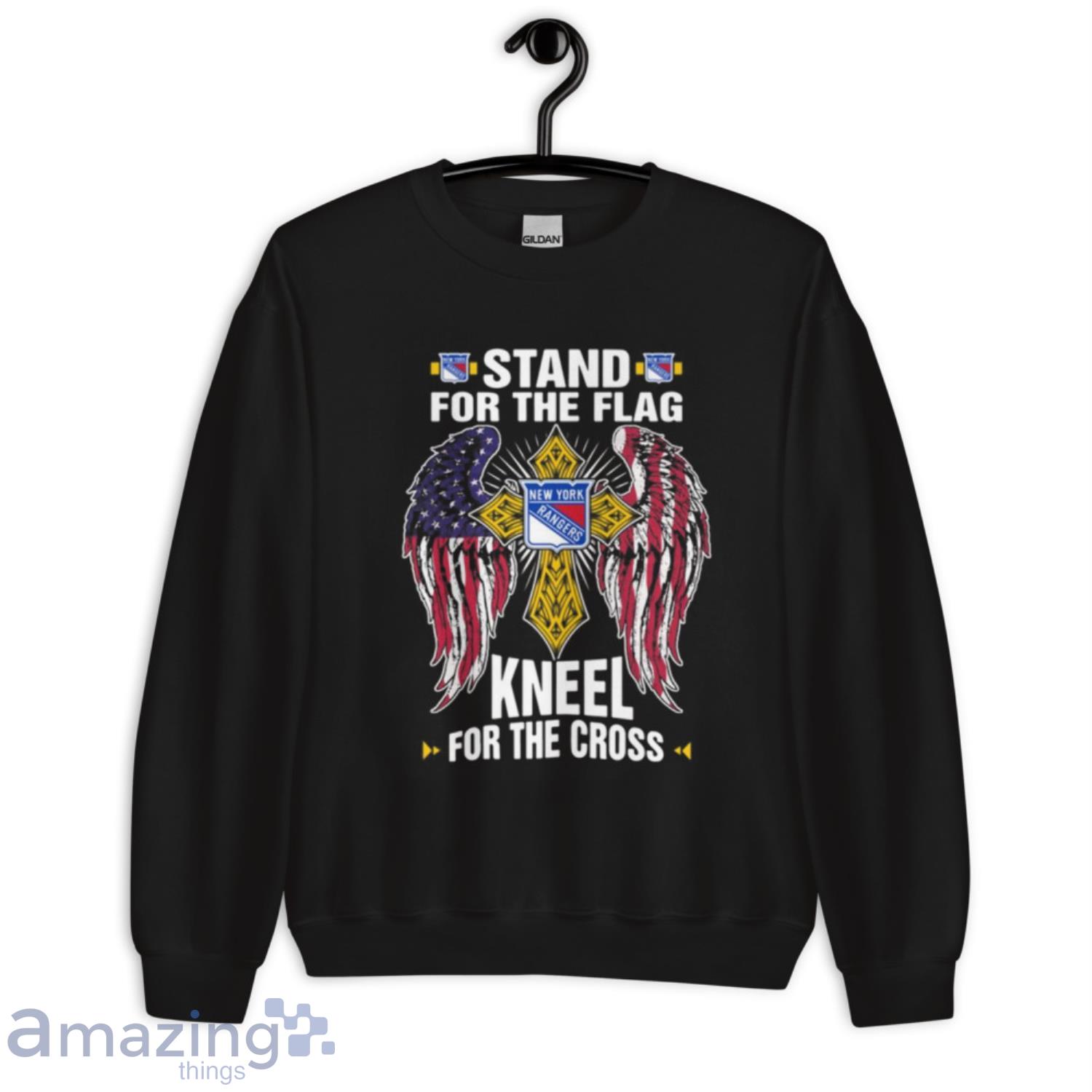 NHL Hockey New York Rangers Stand For Flag Kneel For The Cross T- Shirt Details