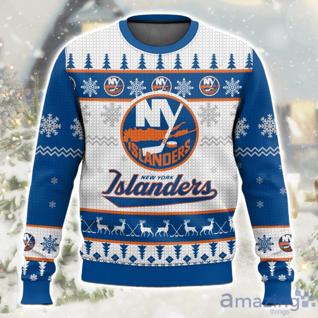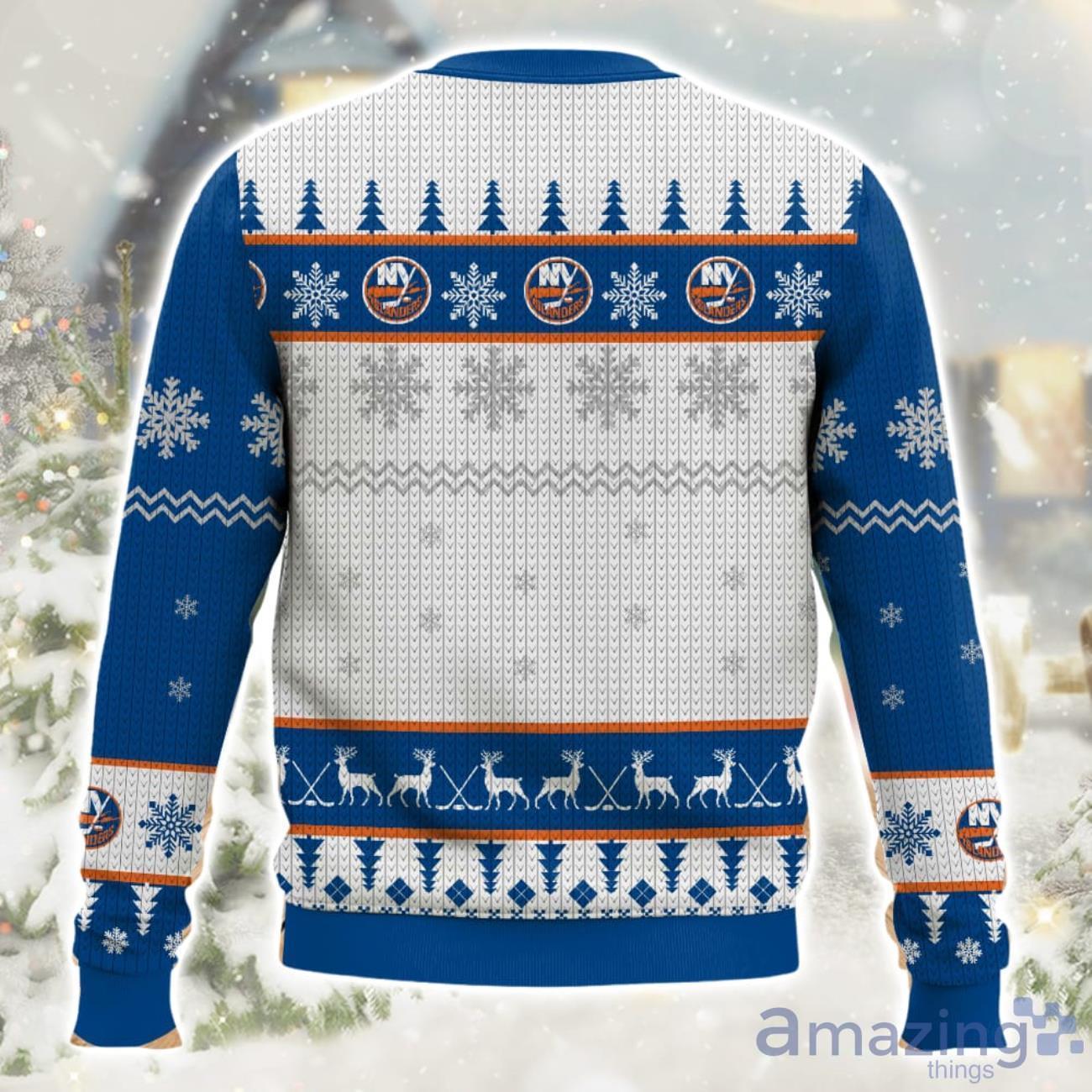 Get into the holiday spirit with the NHL New York Islanders Ugly Christmas Sweater! Show off your team pride in the most festive way possible with this eye-catching sweater. Designed with the iconic Islanders logo and adorned with a playful holiday pattern, this sweater is the perfect addition to your winter wardrobe. Crafted with utmost care, it guarantees supreme comfort and warmth throughout the chilly season. Whether you’re attending a holiday party or watching the game from the comfort of your couch, this sweater is sure to turn heads and spark conversations. Spread cheer, celebrate your favorite team, and stay cozy this Christmas with the NHL New York Islanders Ugly Christmas Sweater!