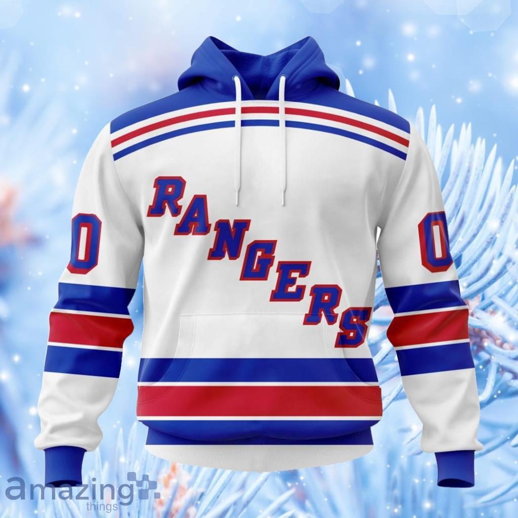 Elevate your game day style with our NHL New York Rangers Personalized Away Kits Hoodie. This unique 3D all-over print hoodie is the perfect gift for any die-hard Rangers fan. Made for both men and women, this hoodie is sure to turn heads at the next game or watch party. Show off your team pride in style with this one-of-a-kind hoodie.