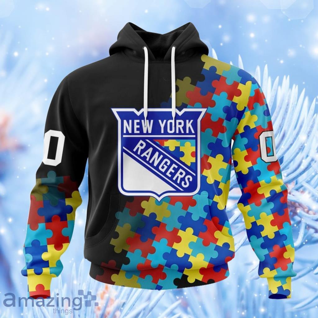 Nhl New York Rangers Special Black Autism Awareness Design Hoodie 3D All Over Print Attract Gift For Men And Women