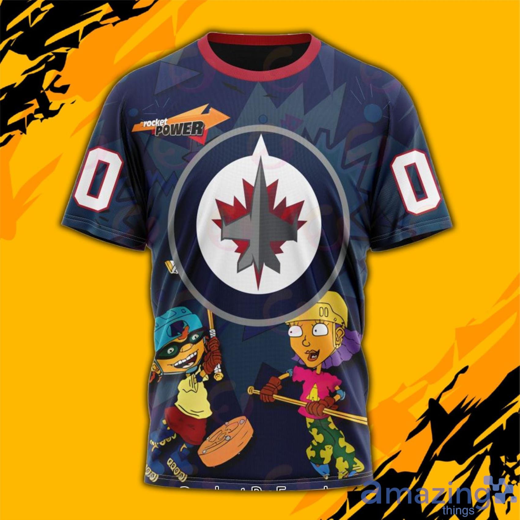 Perfect design for holiday. Get yours this shirt or this is a cute item for your daddy, gift for your mom, and gift for friends on any occasion. buy a cute NHL Winnipeg Jets Custom Name And Number Rocket Power Over Print 3D Shirt now.