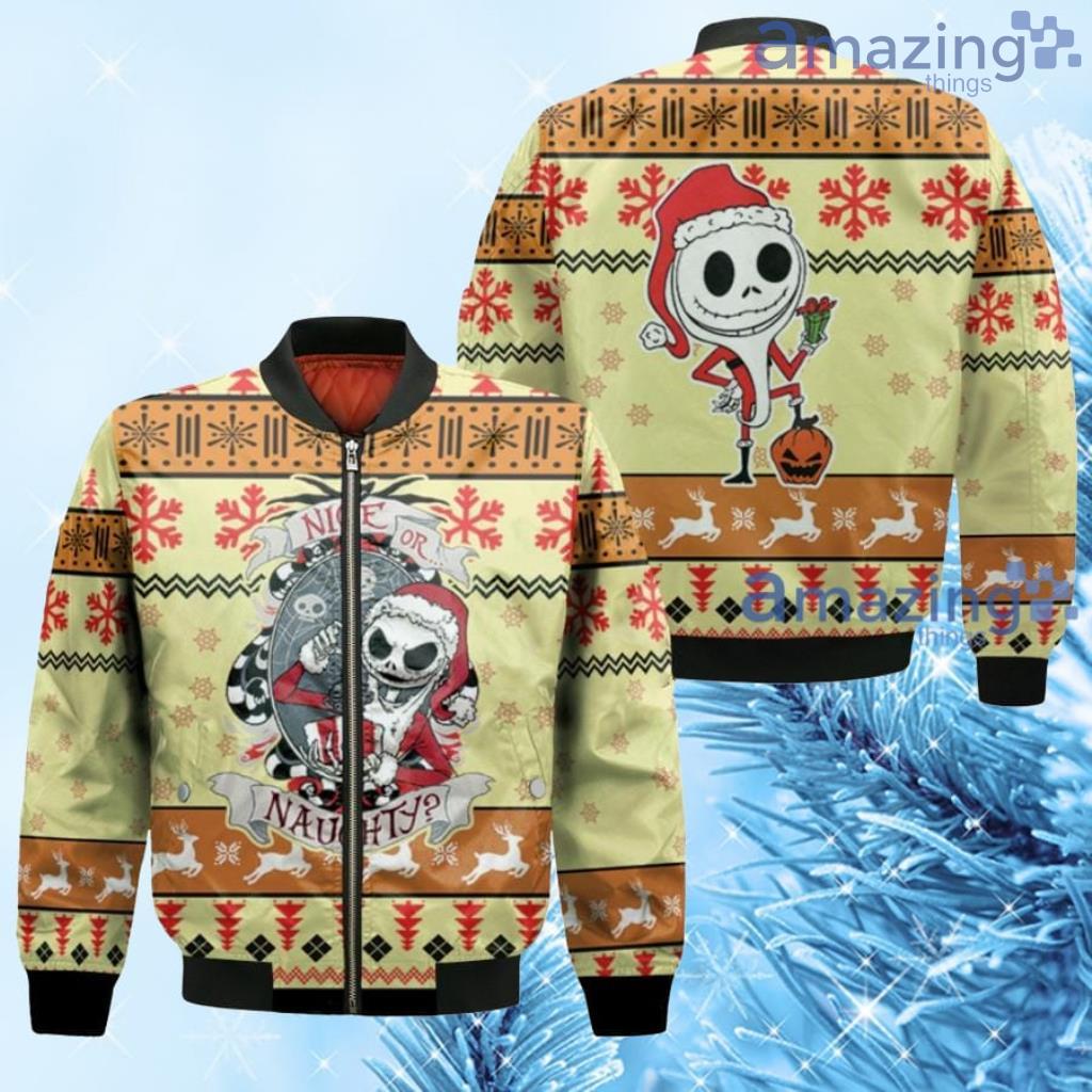 Some of the Nightmare Before Christmas Nice Or Naughty Jack Skellington Christmas Pattern 3D Designed Allover Gift For Halloween Lovers Christmas Lovers Bomber photos