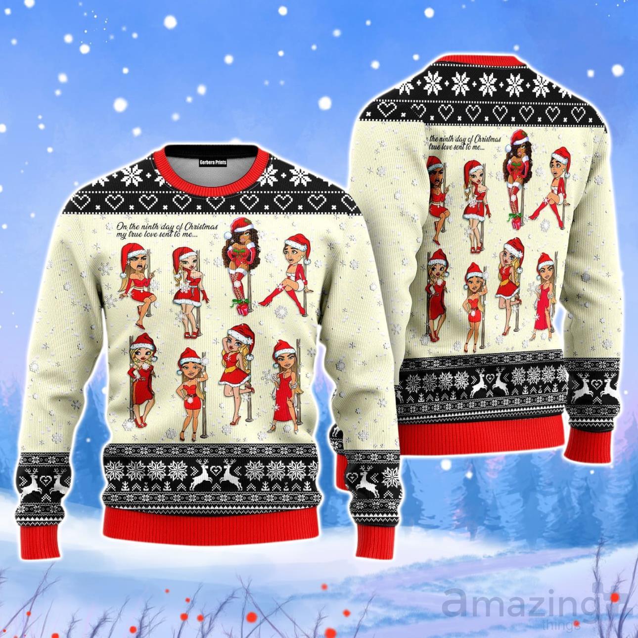 Nine Sweet Santa Ladies Dancing Christmas Unisex Ugly Sweater Informations: