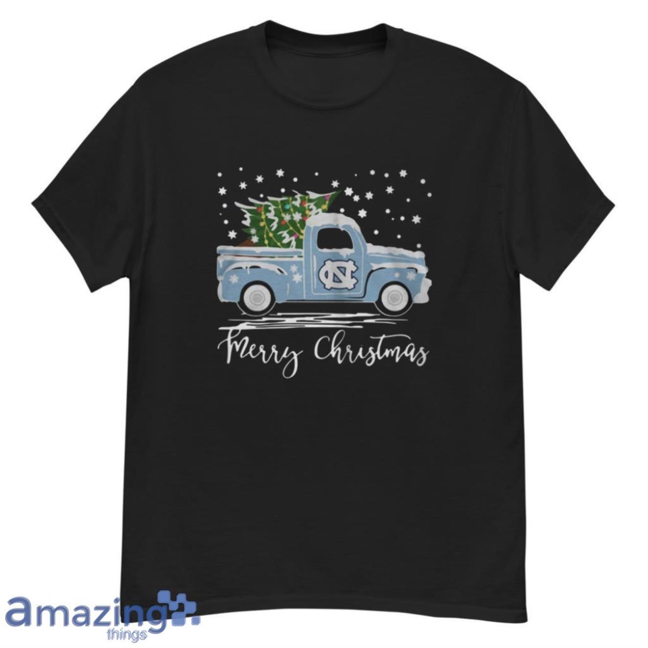 North Carolina Tar Heels Pickup Truck Merry Christmas Shirt Details