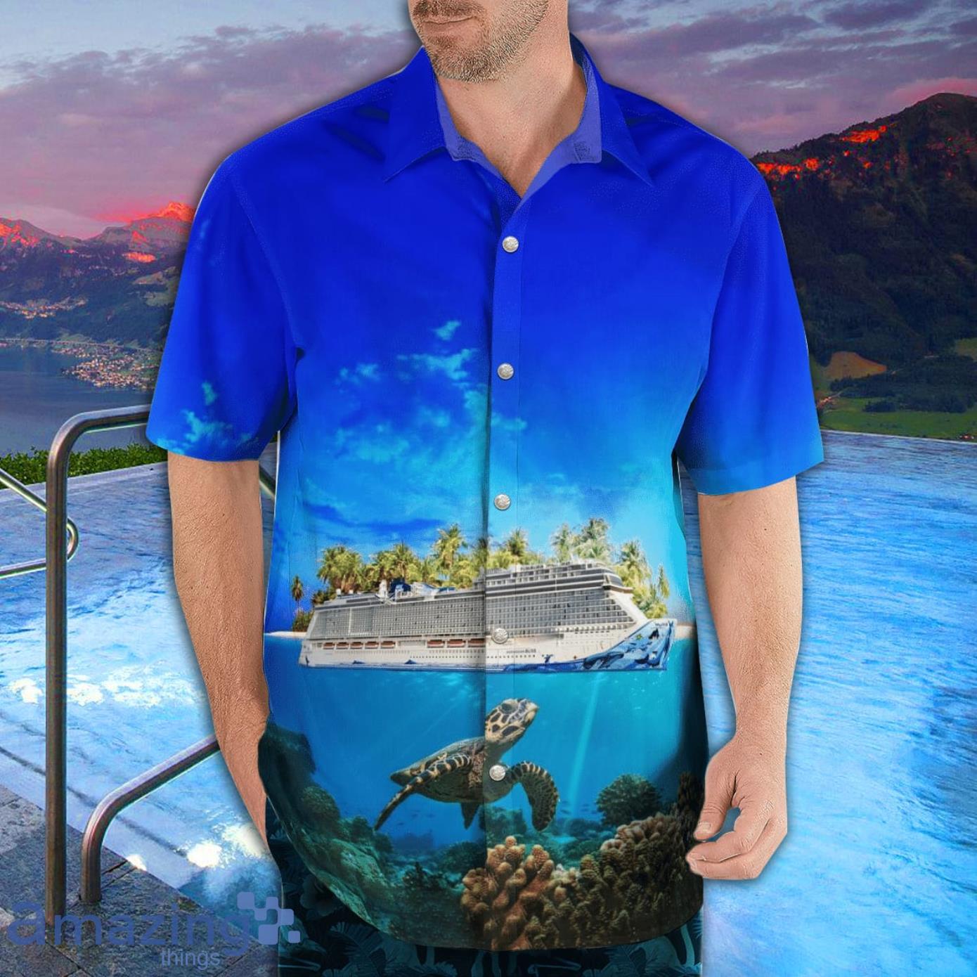 This design is available in a combo Hawaiian shirt & shorts. You can also get it separate. The default option is only one shirt or one pair of shorts. You have chosen a combo to get them both. This combo Norwegian Cruise Line Norwegian Bliss AOP Print Hawaiian Shirt And Short Set is perfect to go to the beach. Get yours now or make a great gift.