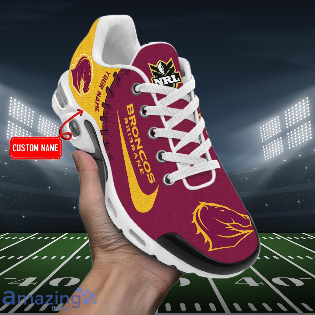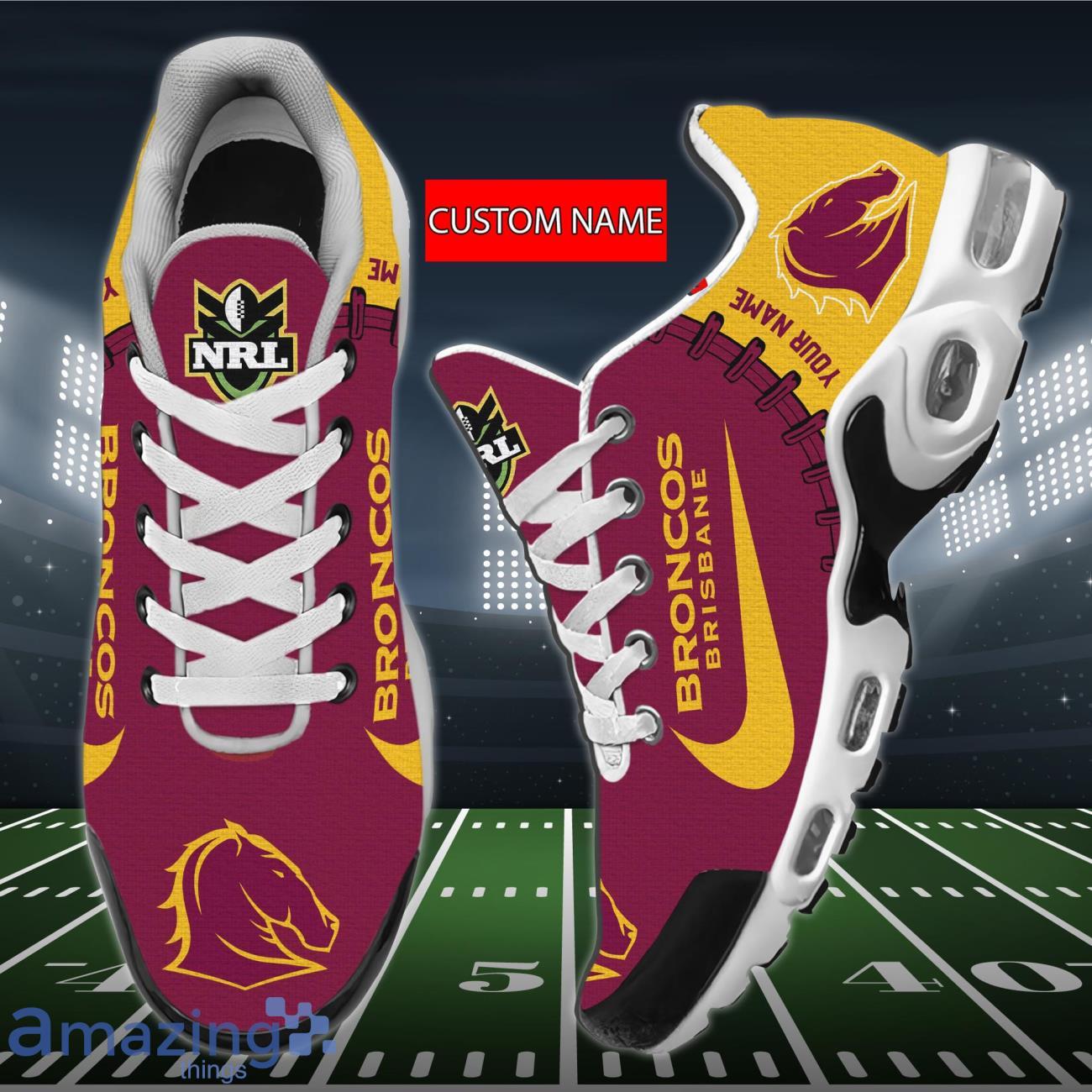 Crafted with precision and attention to detail, these sports shoes showcase the iconic NRL Brisbane Broncos logo, proudly displaying your unwavering team spirit. The custom name feature adds a personal touch, making them truly one-of-a-kind. Whether you’re cheering from the stands or hitting the streets, these shoes will make a bold statement wherever you go.