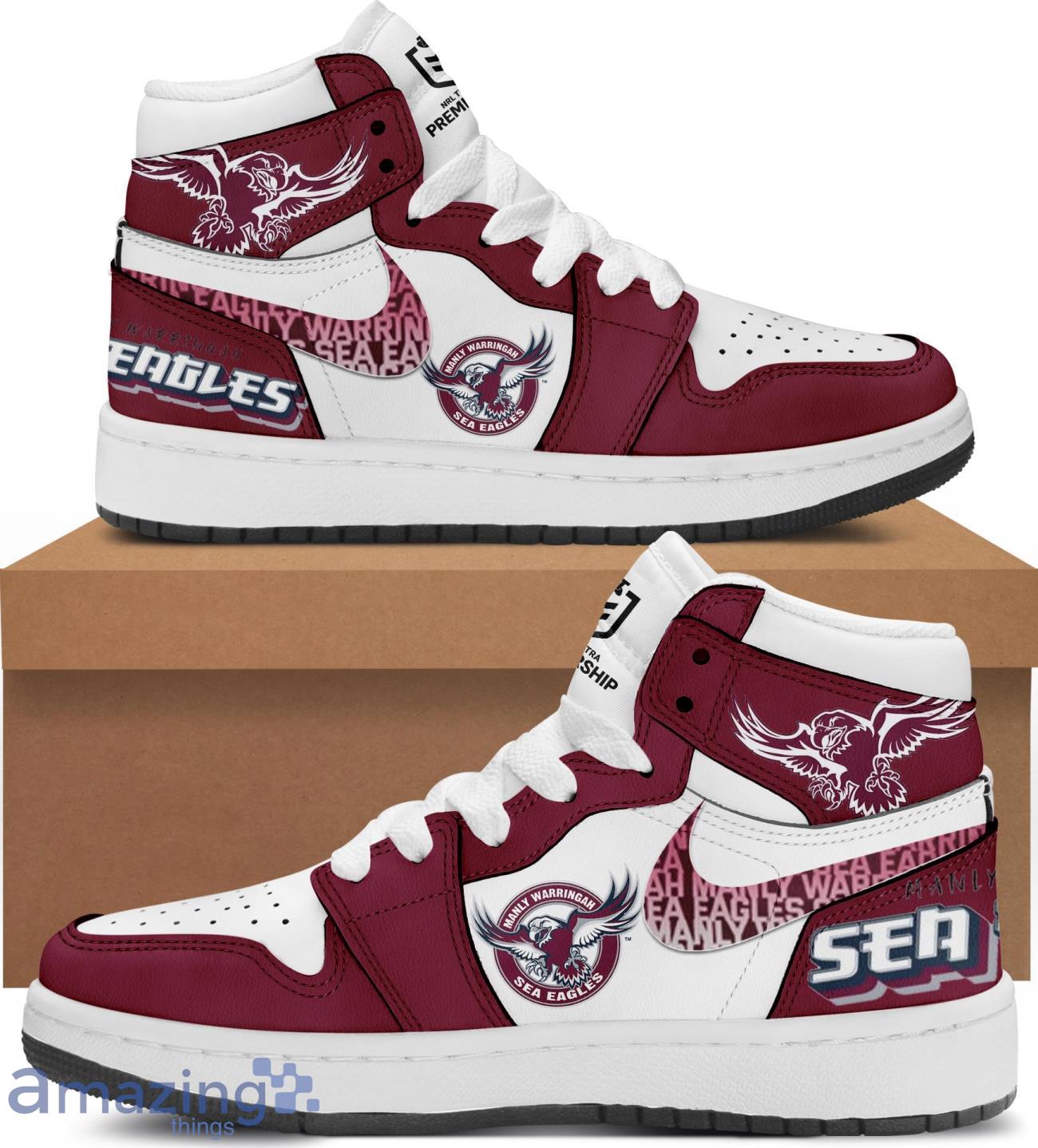 Whether you’re cheering from the stands or hitting the streets, the NRL Manly Sea Eagles Air Jordan Hightop is the ultimate footwear choice for every loyal fan. Don’t miss out on the opportunity to showcase your team pride with style and finesse. Get your pair today and soar to new heights with the Manly Sea Eagles.