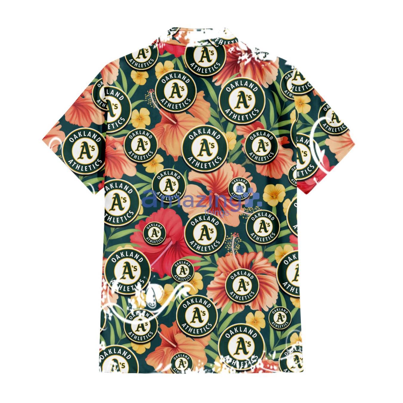Don’t miss out on the opportunity to own this one-of-a-kind shirt. Order your Oakland Athletics Orange Red Hibiscus Green Leaf Dark Background 3D Hawaiian Shirt today and let your team pride shine!