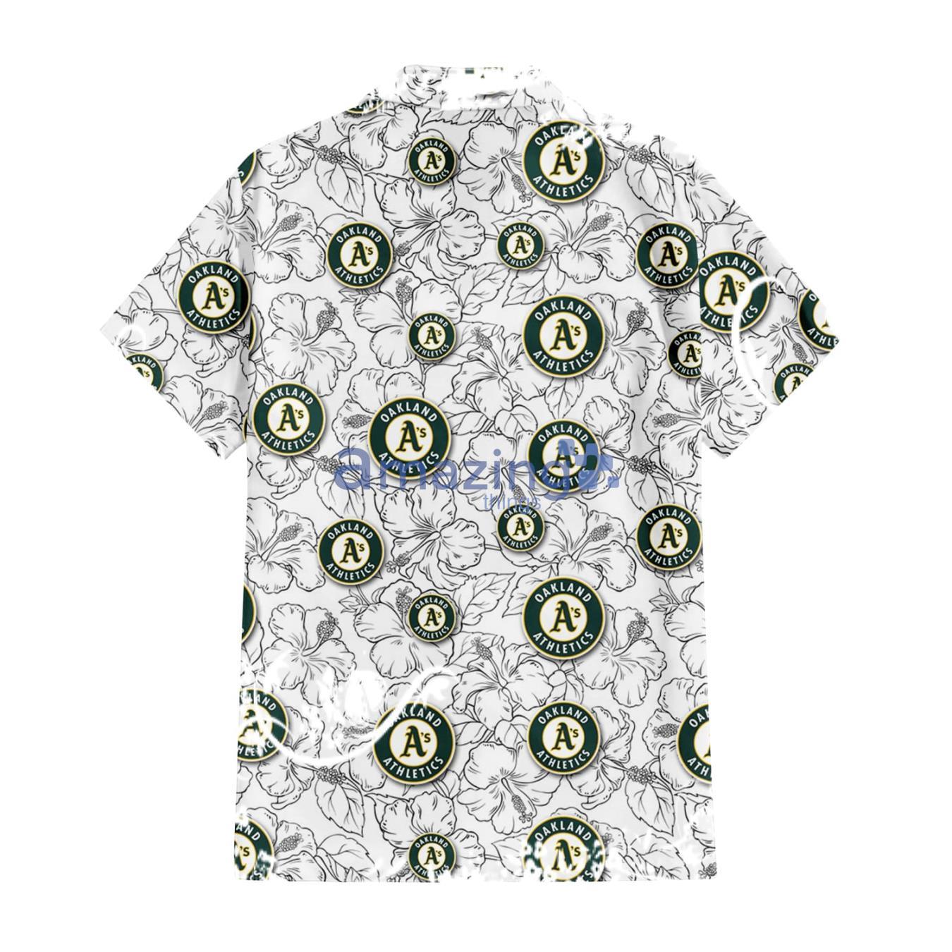 Oakland Athletics White Sketch Hibiscus Pattern White Background 3D Hawaiian Shirt Gift For Fans Details: