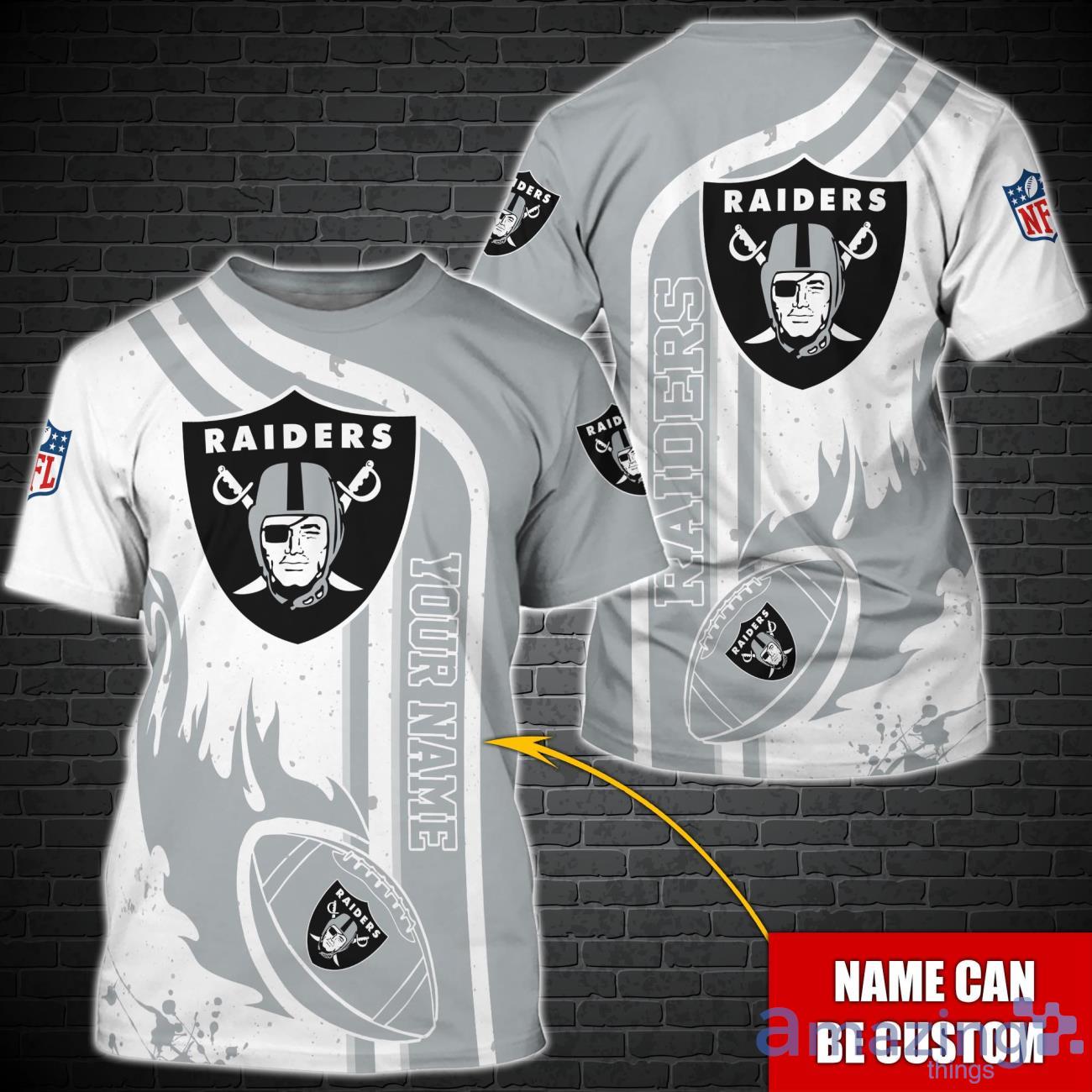 Featuring a customizable design, you can proudly display your name alongside the bold Raiders logo, making this shirt truly one-of-a-kind. Whether you’re attending a game, hosting a watch party, or simply running errands, this t-shirt effortlessly combines style and team spirit.