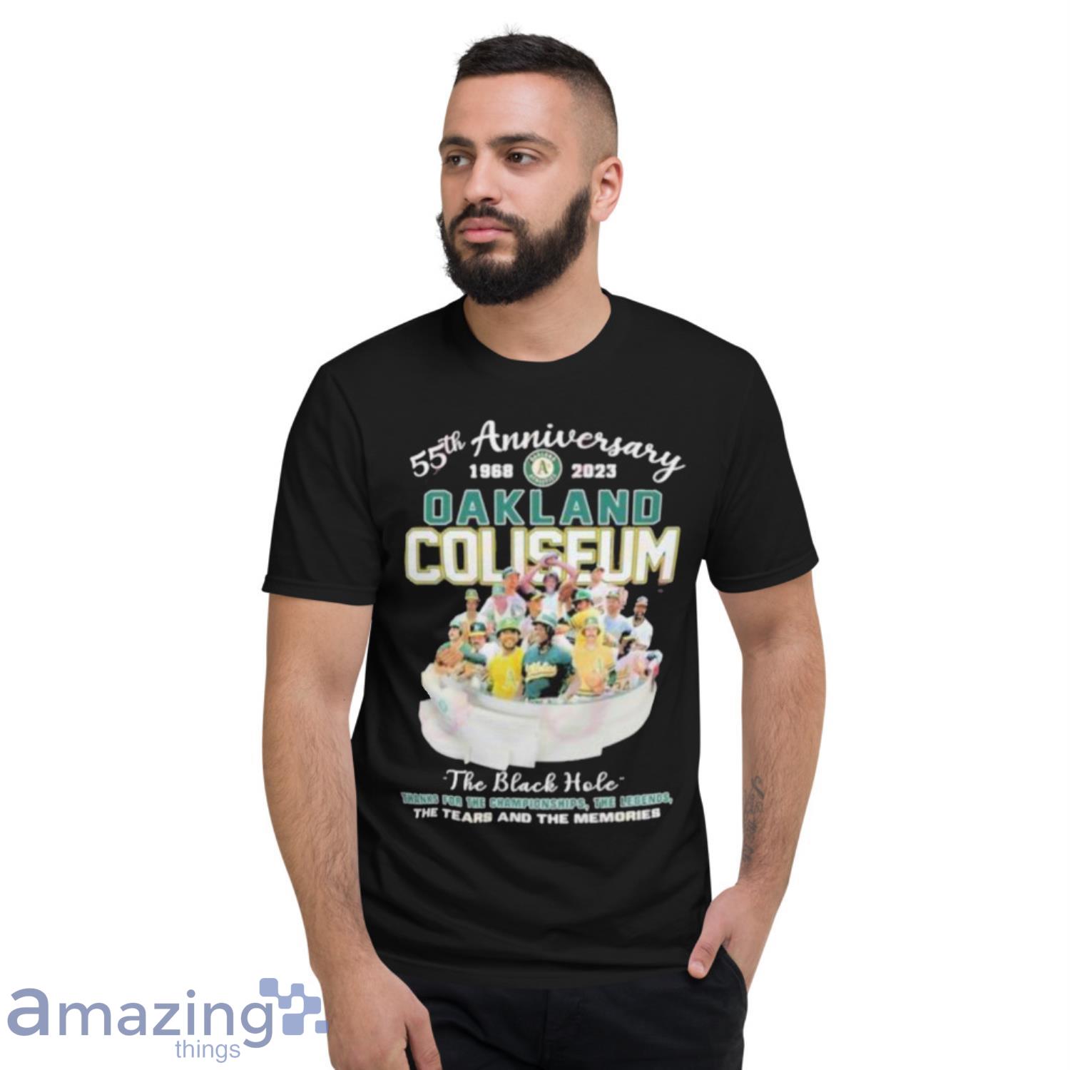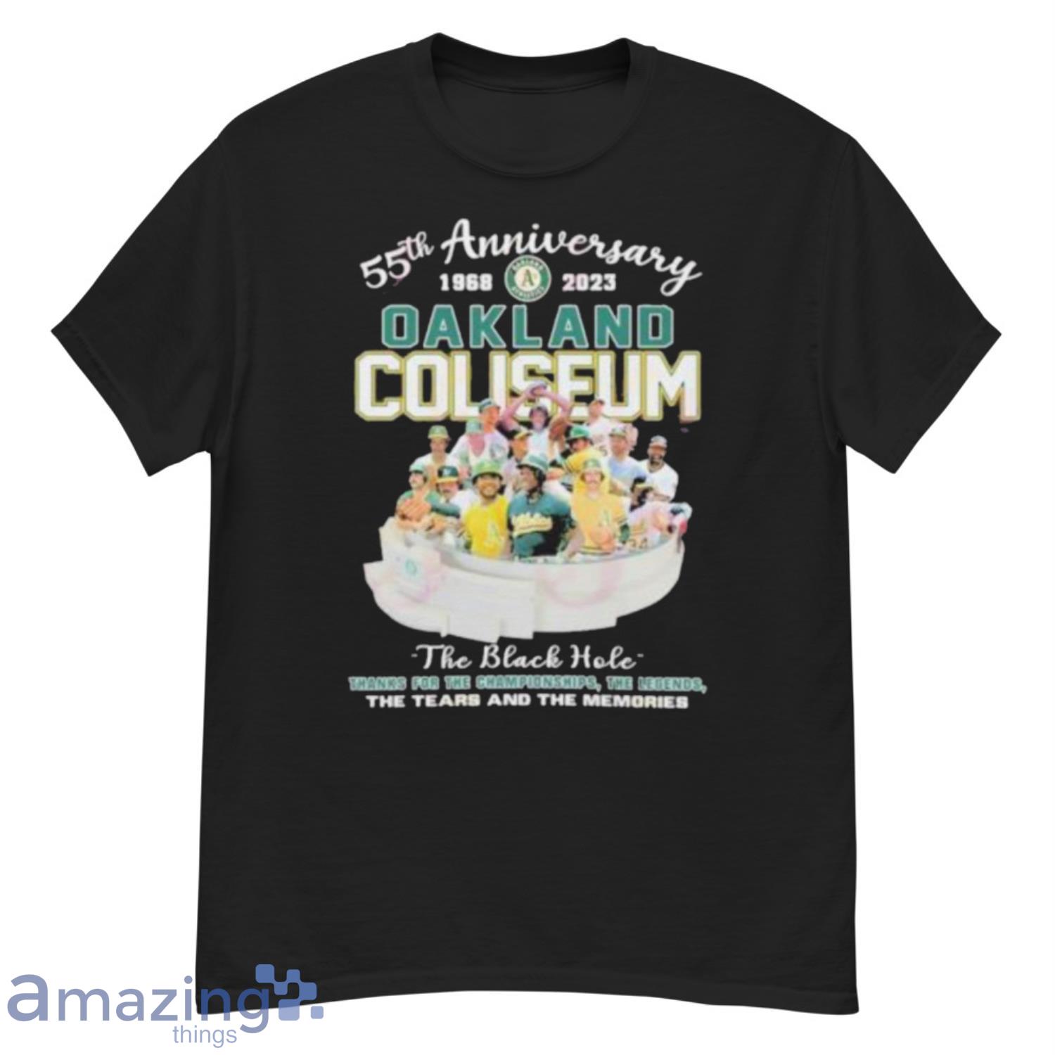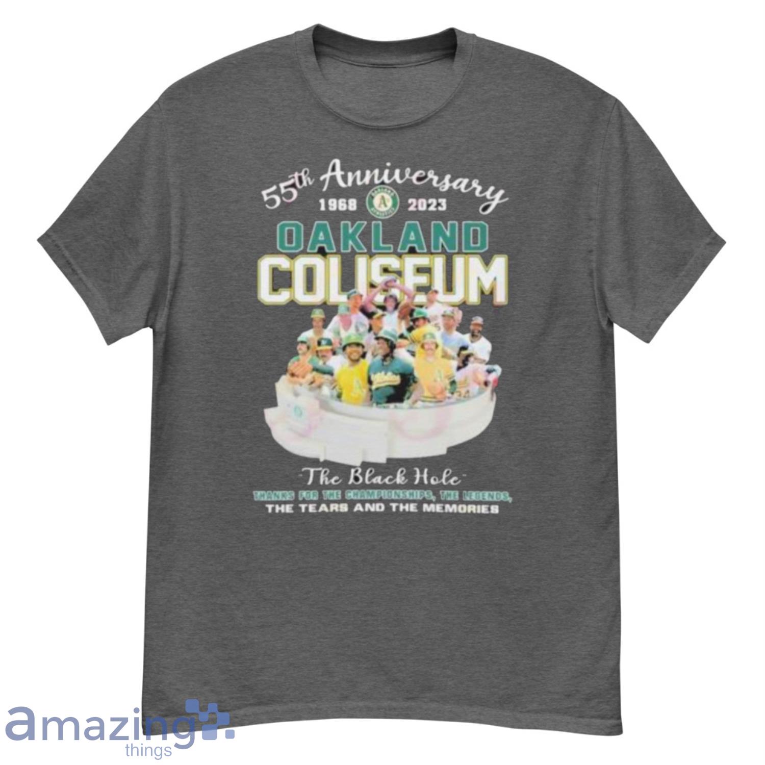 Official 55th Anniversary 1968–2023 Oakland Coliseum The Black Hole Thanks For The Championships The Legends The Tears And The Memories T-Shirt Details