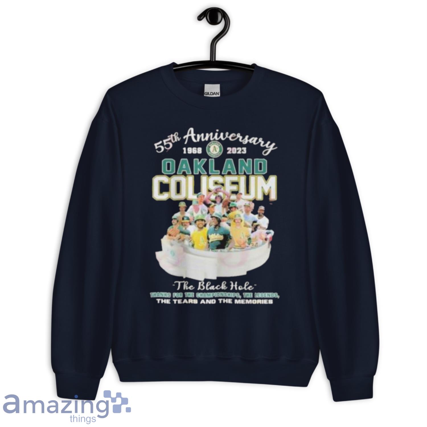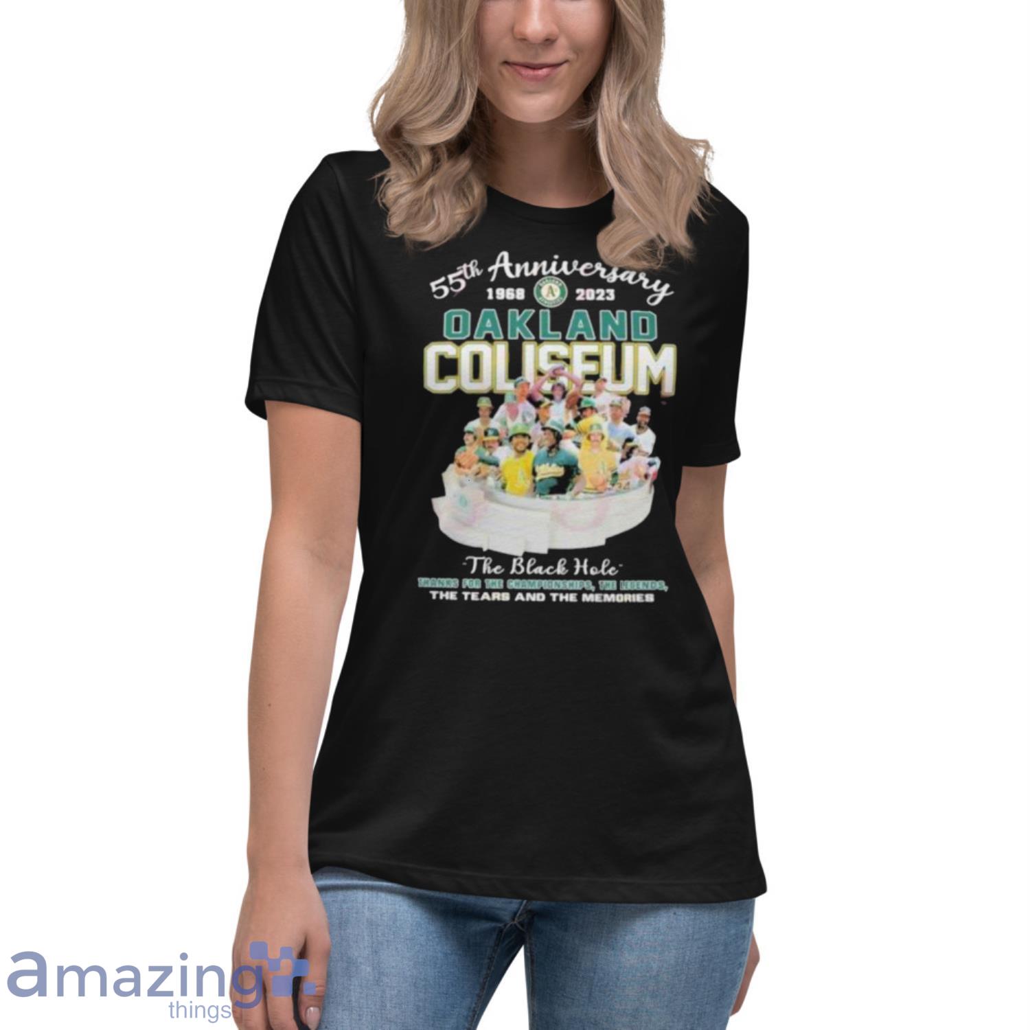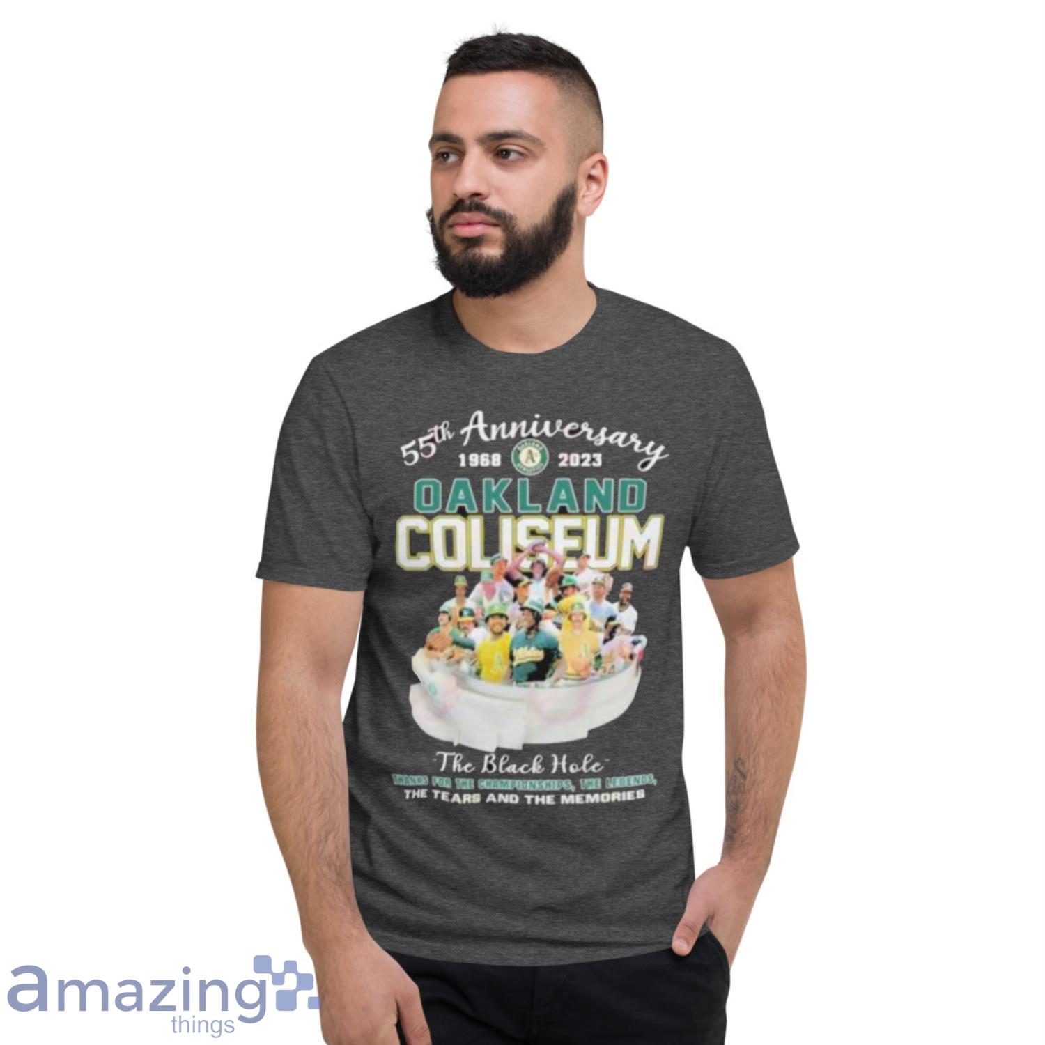 Official 55th Anniversary 1968–2023 Oakland Coliseum The Black Hole Thanks For The Championships The Legends The Tears And The Memories T-Shirt Details