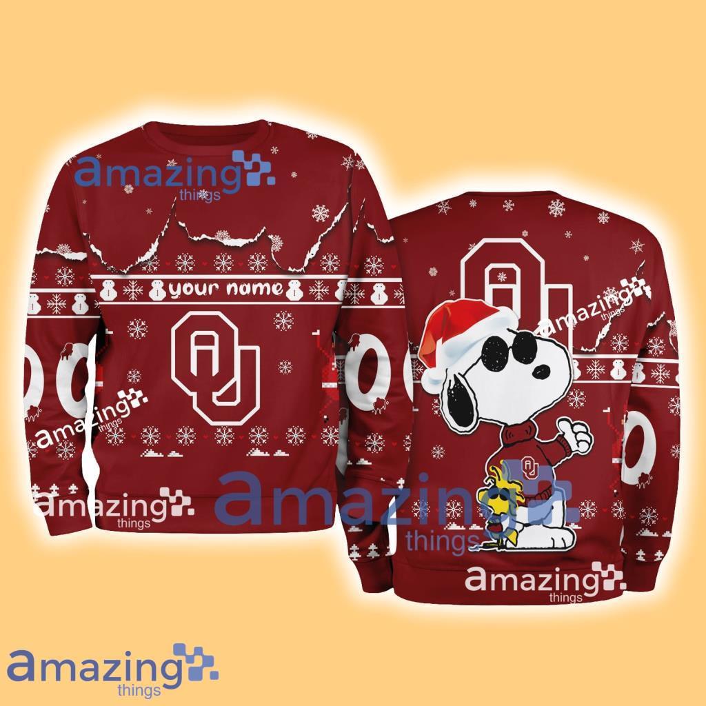 Oklahoma Sooners NCAA Snoopy and Woodstock Cute Personalized Number Christmas Ugly Sweater New Gift Limited Edition Information