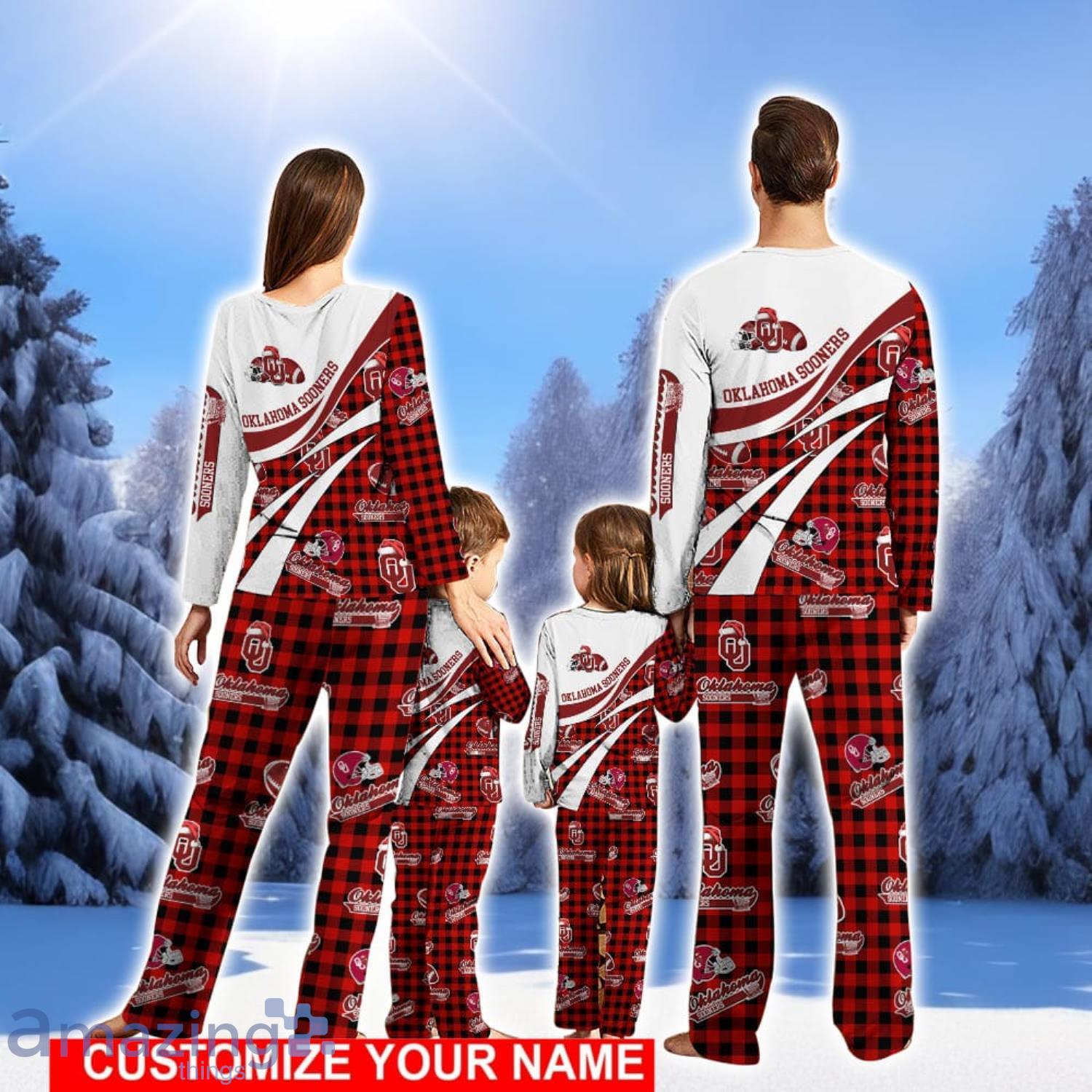 Some of the Oklahoma Sooners Team Pajamas Personalize Name Buffalo Plaid Cute Christmas Pajamas Set photos