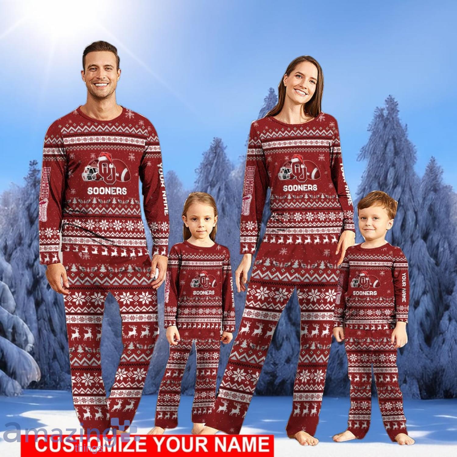 Oklahoma Sooners Team Pajamas Set Christmas Gift For Family Holiday Gift Personalized Name Information