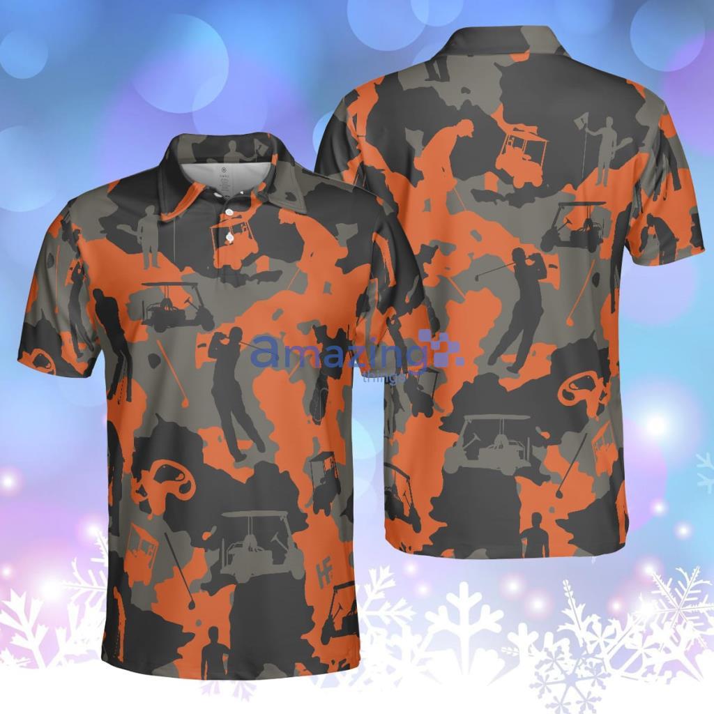 Orange Camouflage Golf Polo Shirt Golfer Silhouette Pattern Polo Shirt Product Photo 1