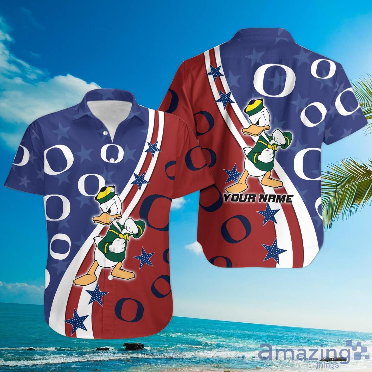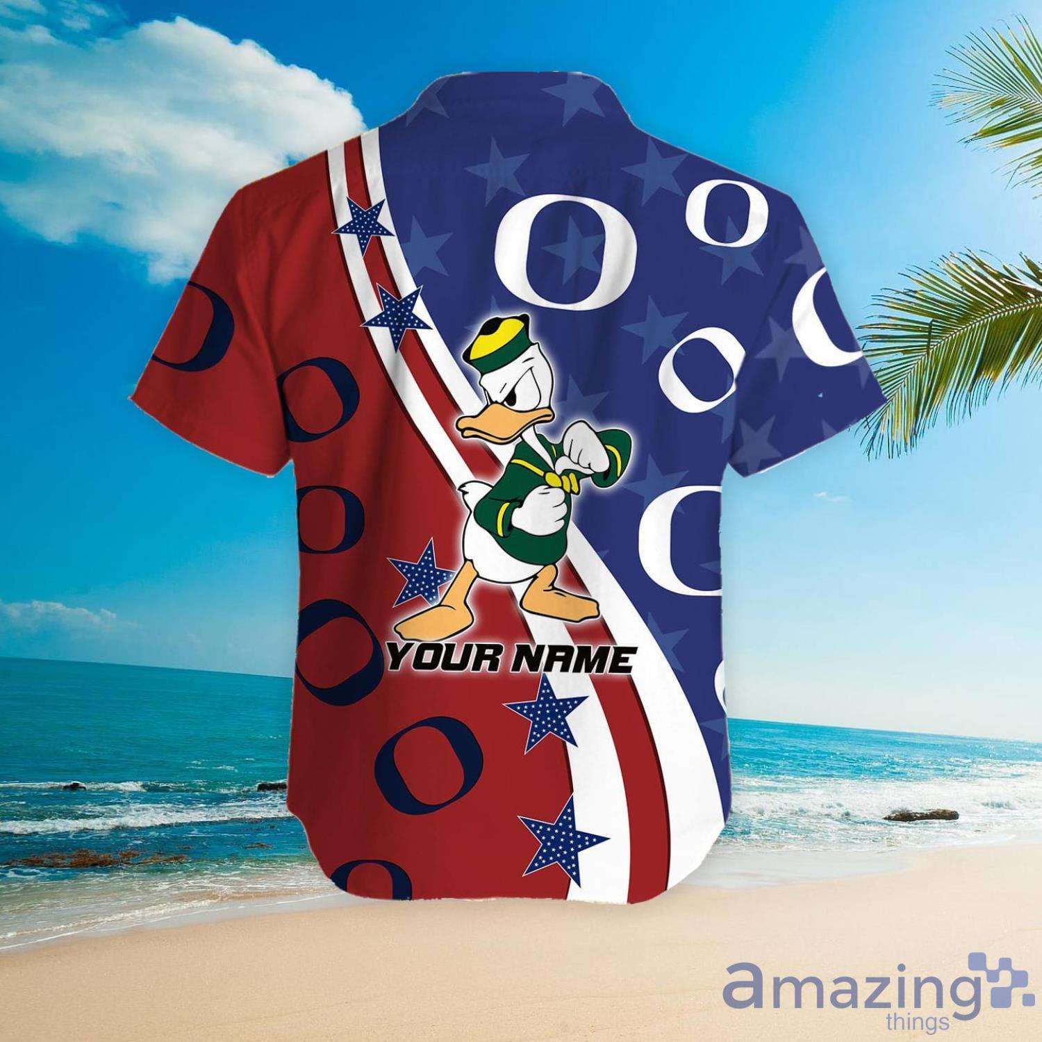 Oregon Ducks American Flag Custom Name Hawaiian Shirt Details: