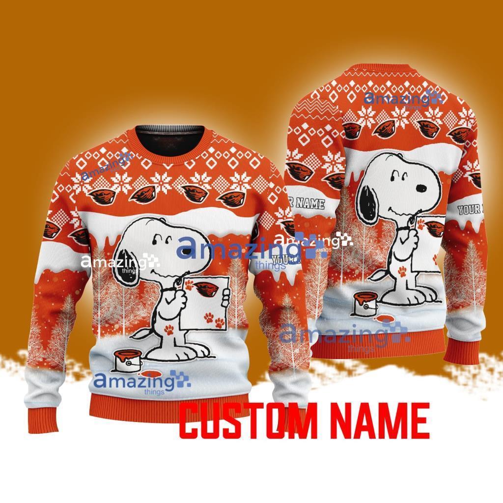 Oregon State NCAA Snoopy Cute Christmas Ugly Sweater 3D Gift For Fans Custom Name Information