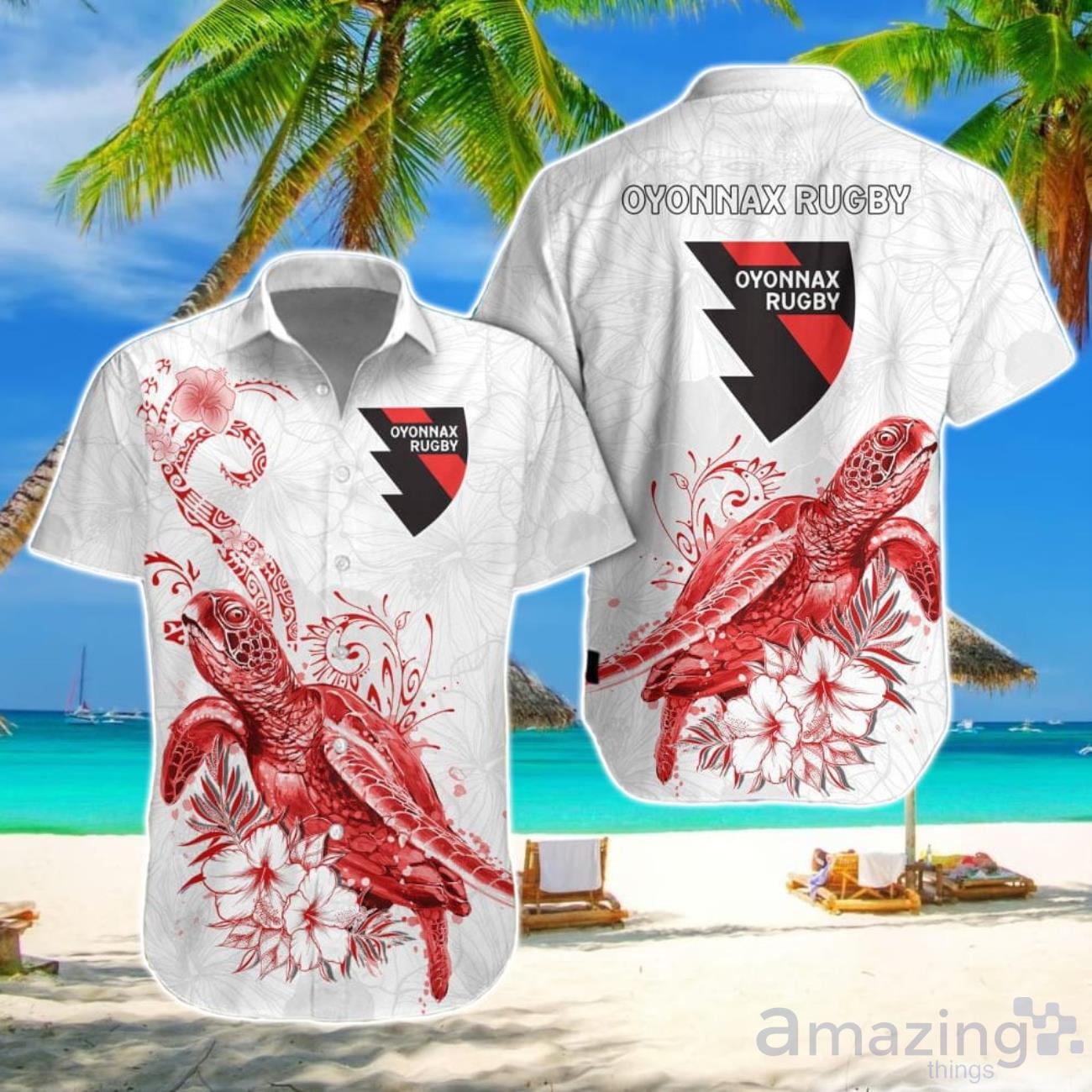This design is available in a combo Hawaiian shirt & shorts. You can also get it separate. The default option is only one shirt or one pair of shorts. You have chosen a combo to get them both. This combo Oyonnax Rugby Hawaiian Shirt And Short New Design For Fans is perfect to go to the beach. Get yours now or make a great gift.