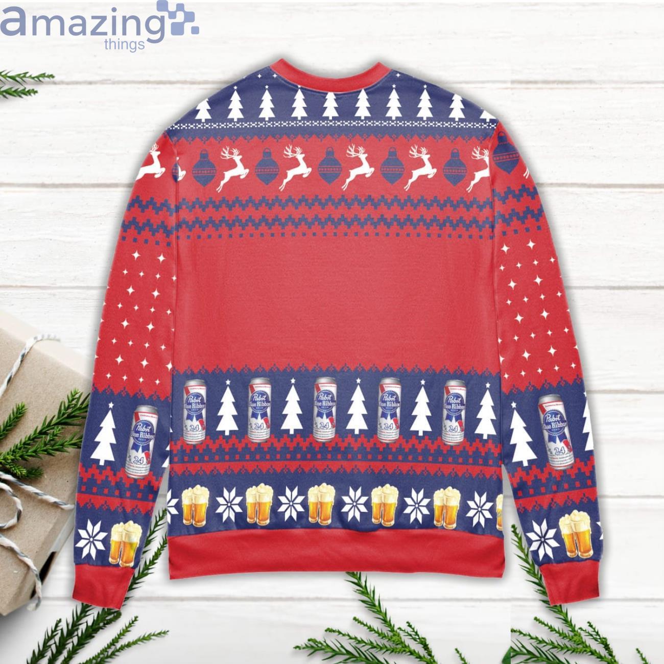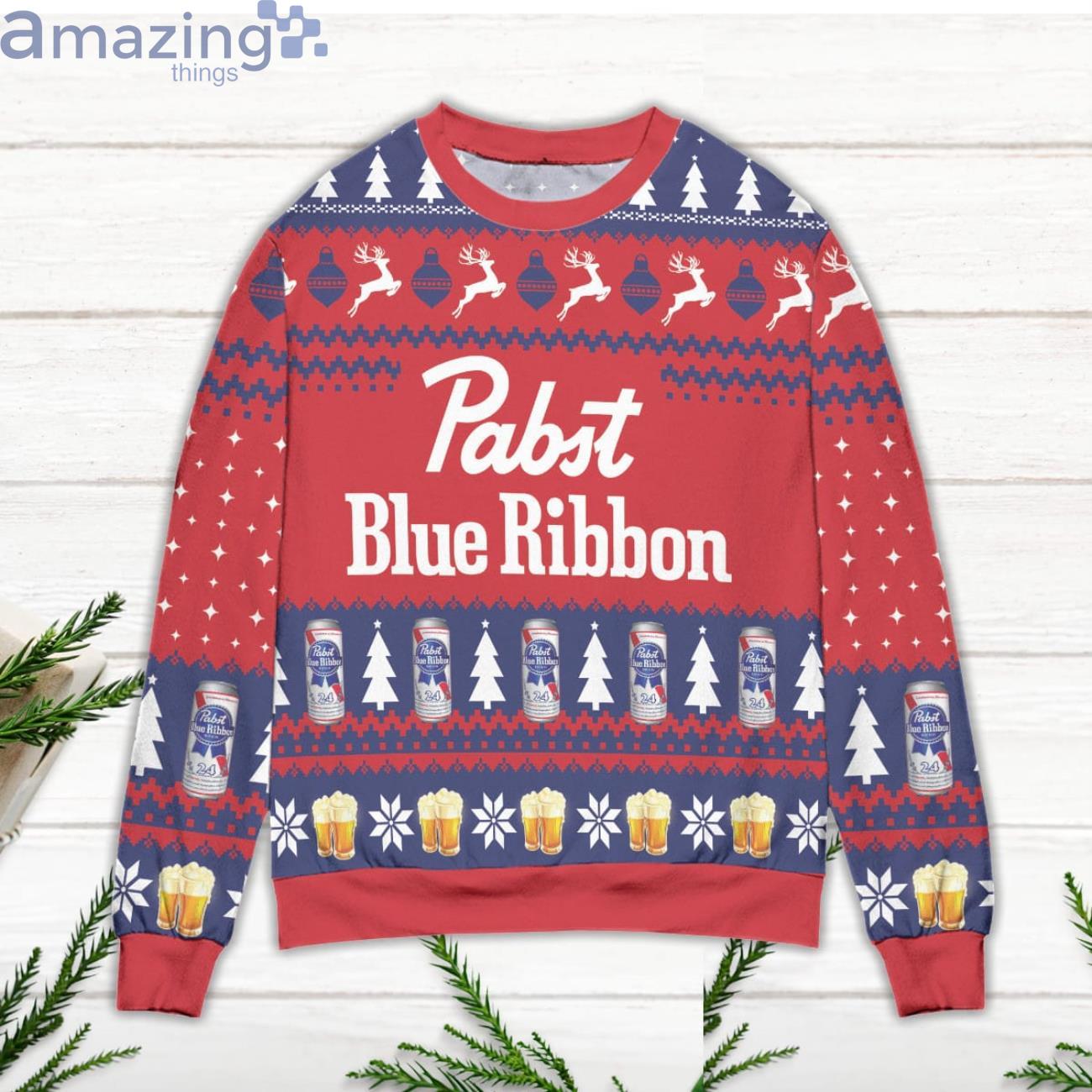 Pabst Blue Ribbon Beer Pine Tree & Reindeer Pattern Ugly Christmas Sweater Informations: