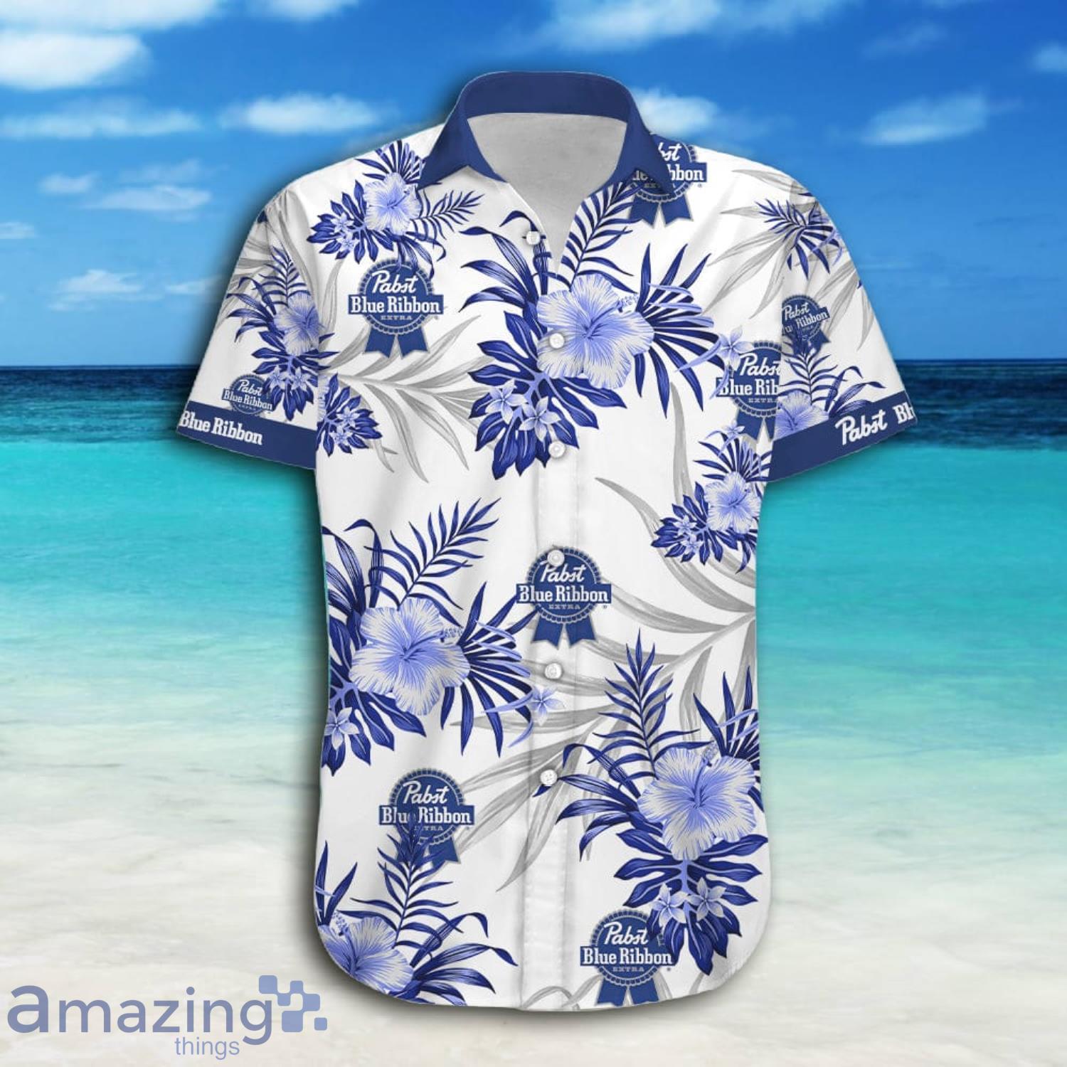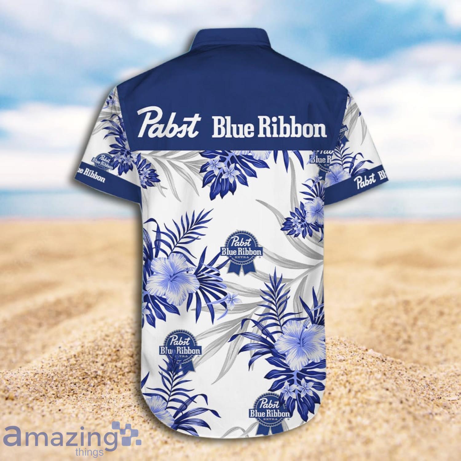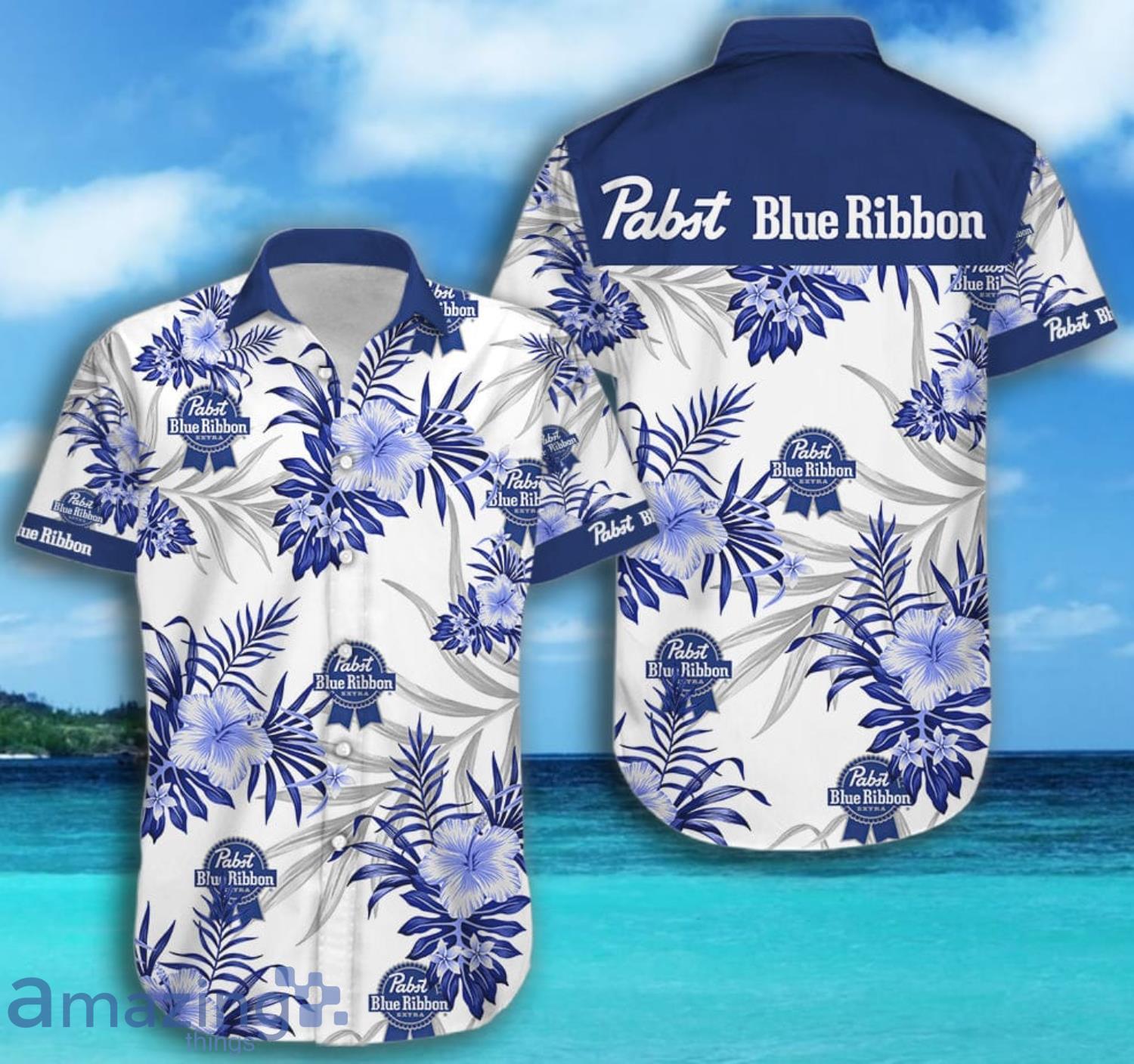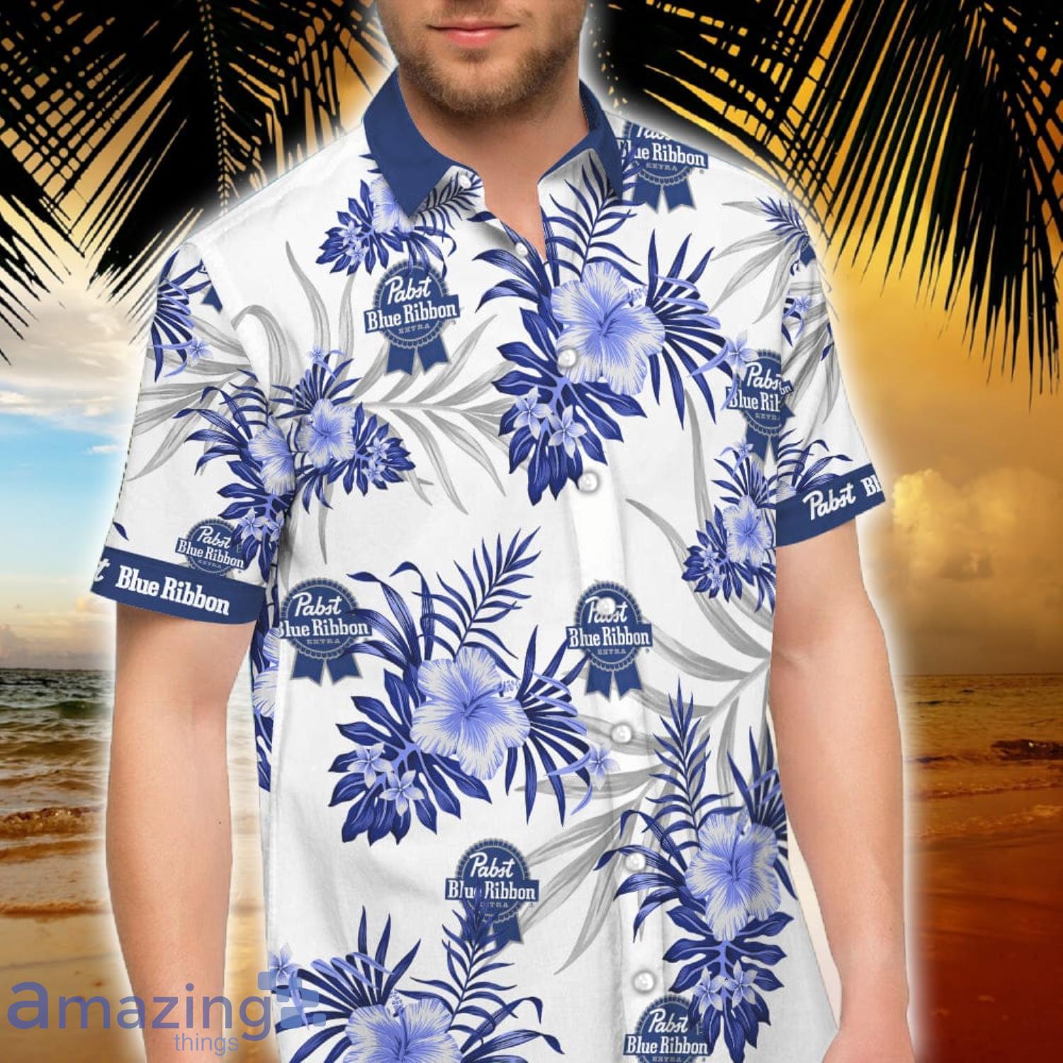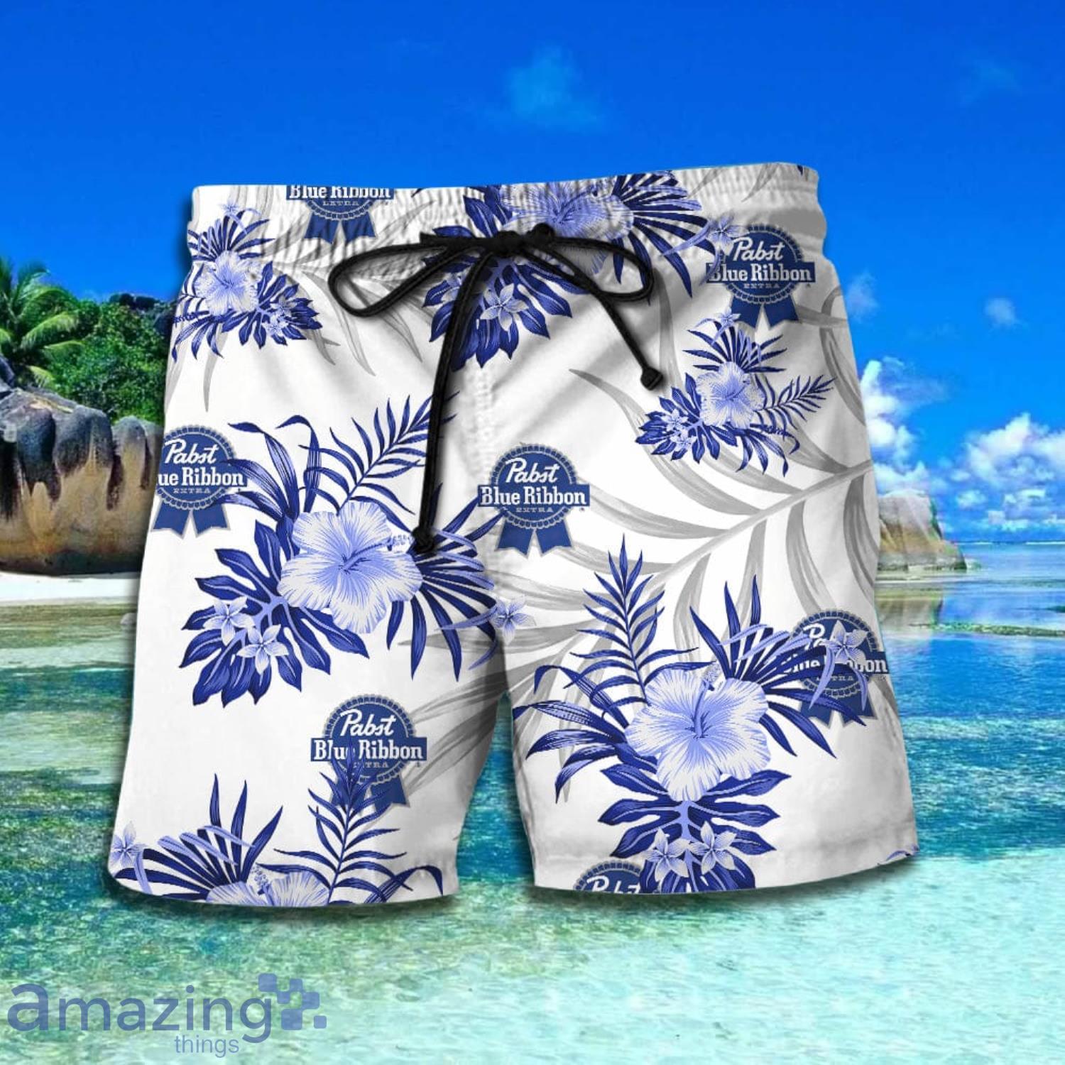 Pabst Blue Ribbon Tropical Pattern White Short Sleeve Hawaiian Shirt And Short