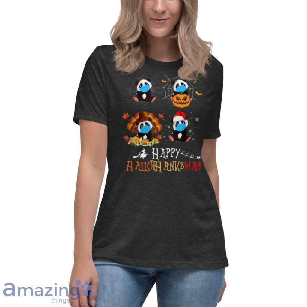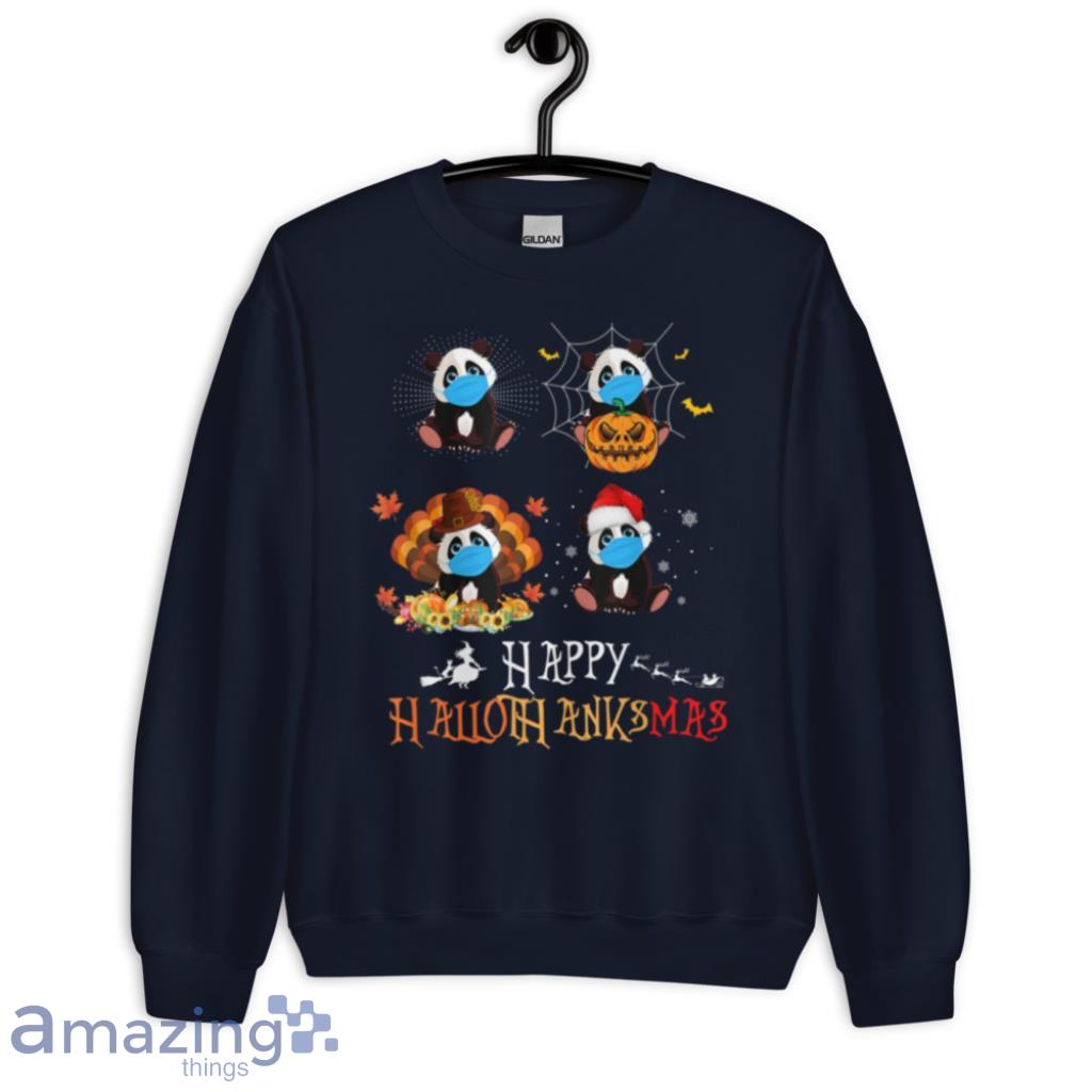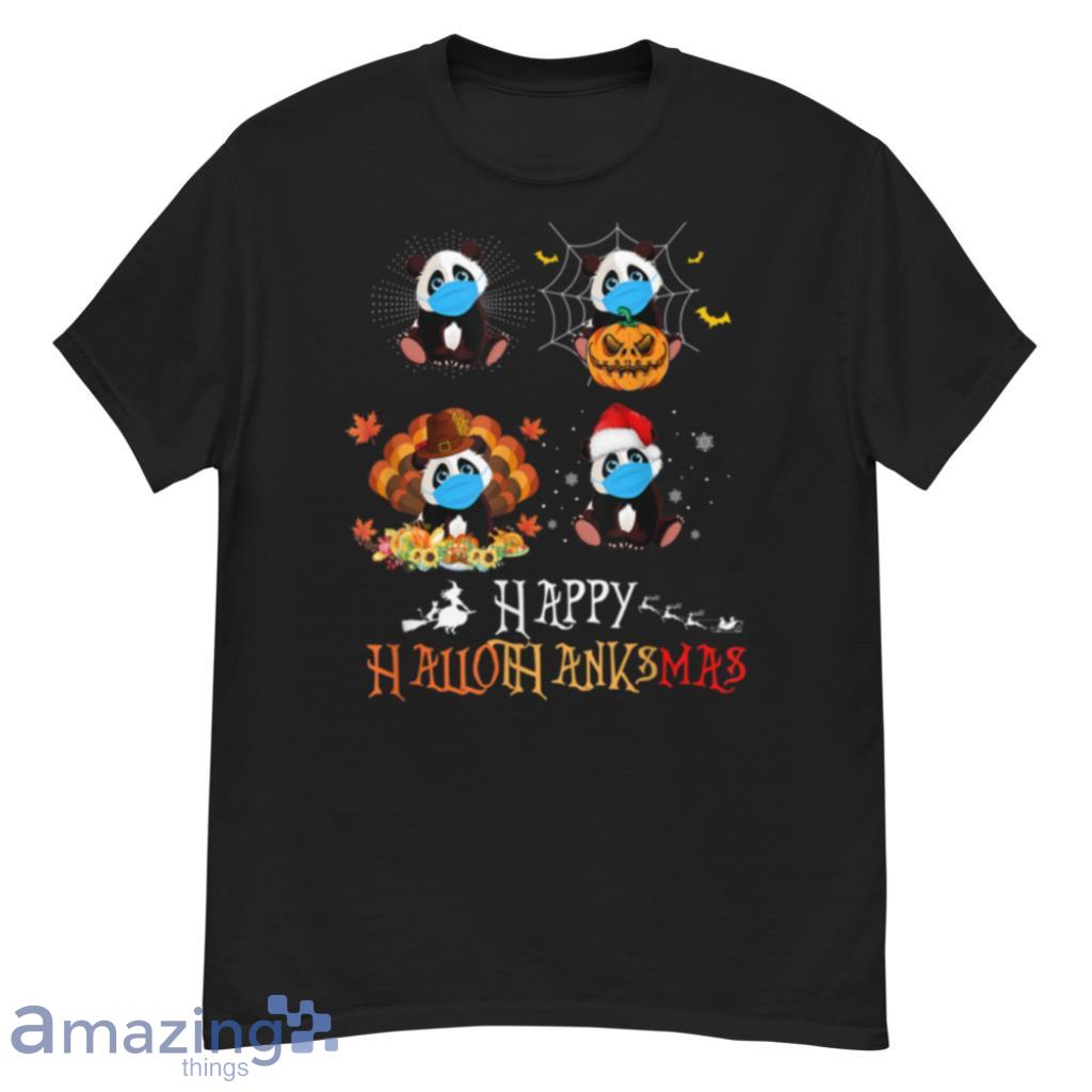 Panda Happy Hallothanksmas Halloween Thanksgiving Christmas T Shirt Details