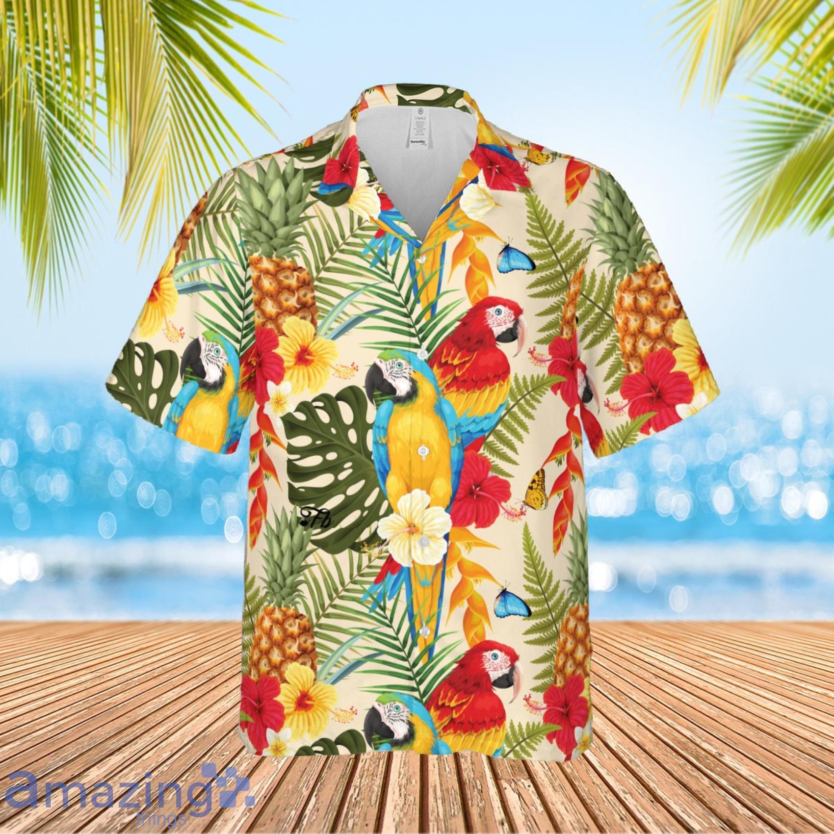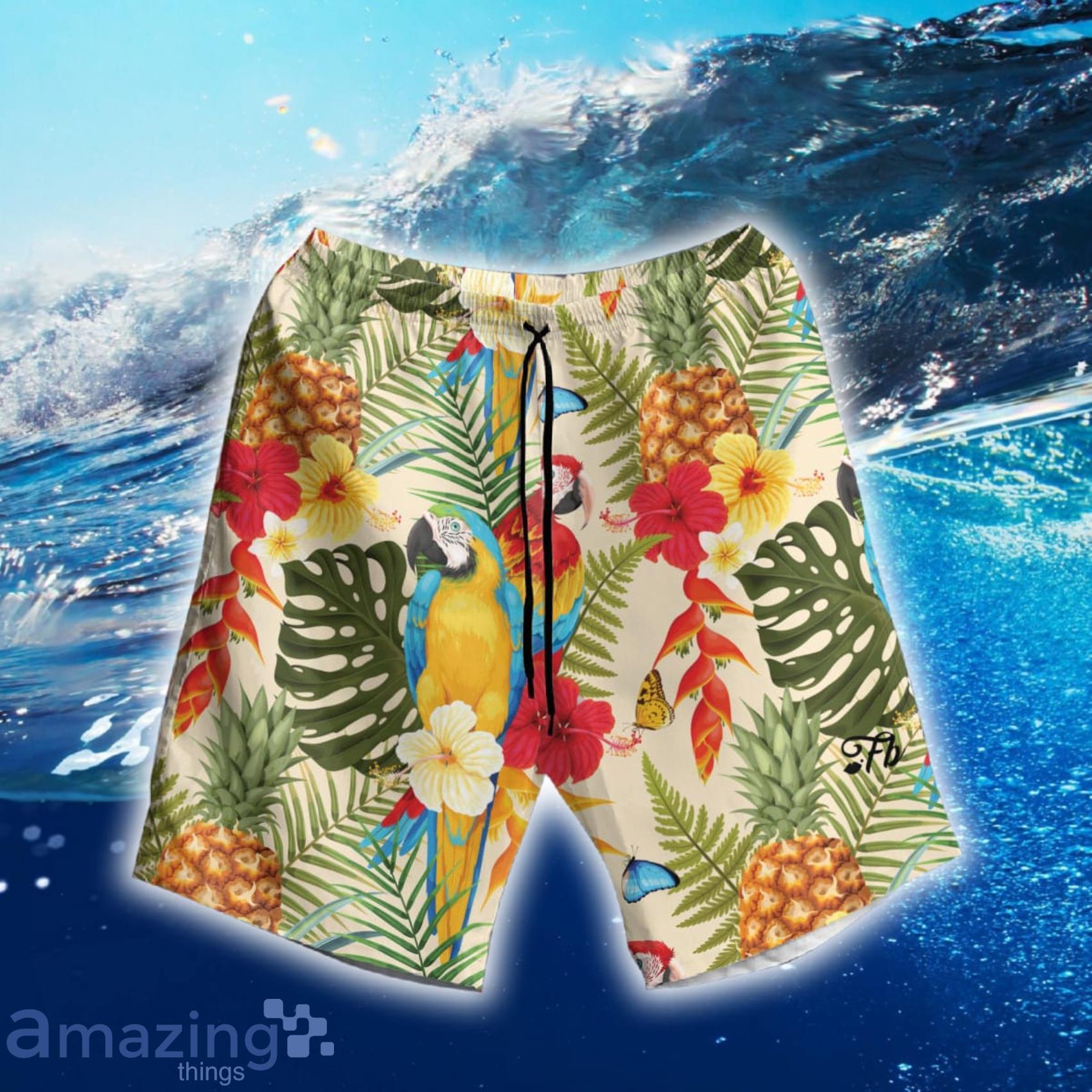 Parrot Tropical Plant Short Sleeve Hawaiian Shirt And Short