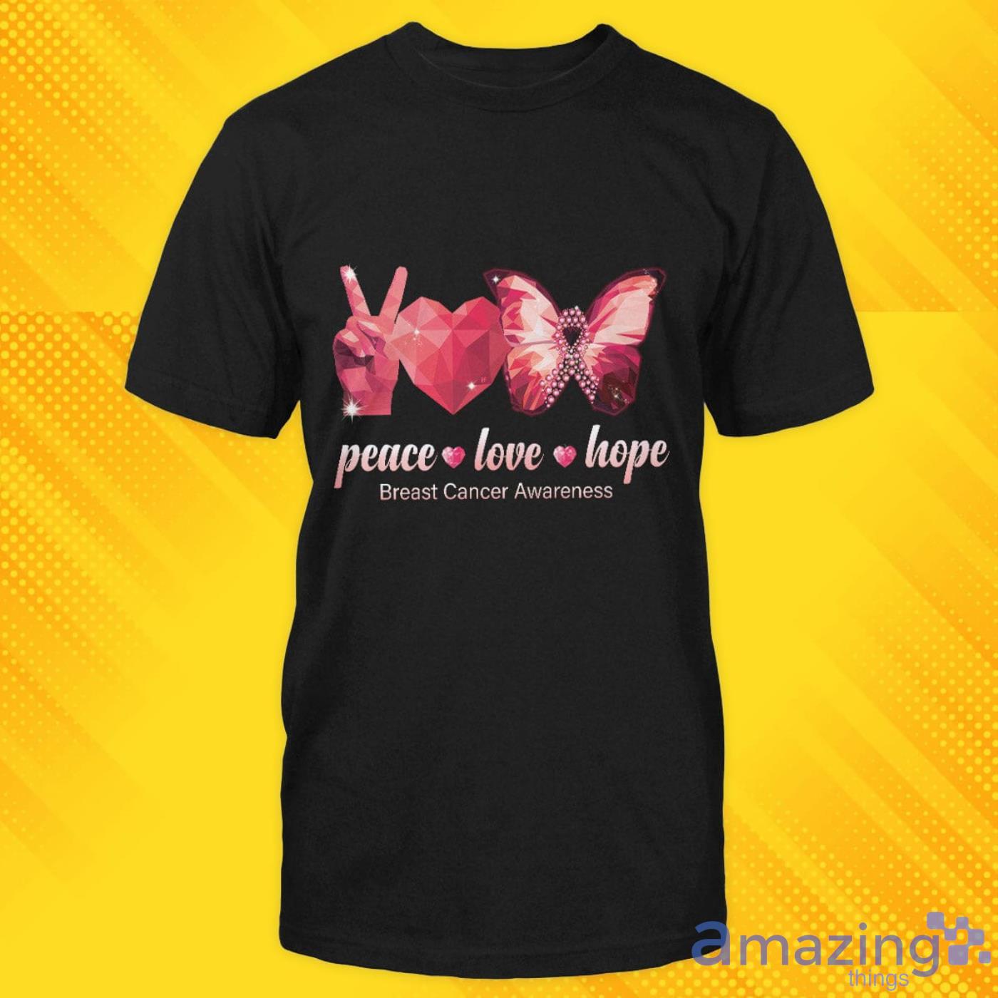 Peace Love Hope Breast Cancer Awareness Red Ruby Heart Butterfly Awareness Ribbon T-shirt
