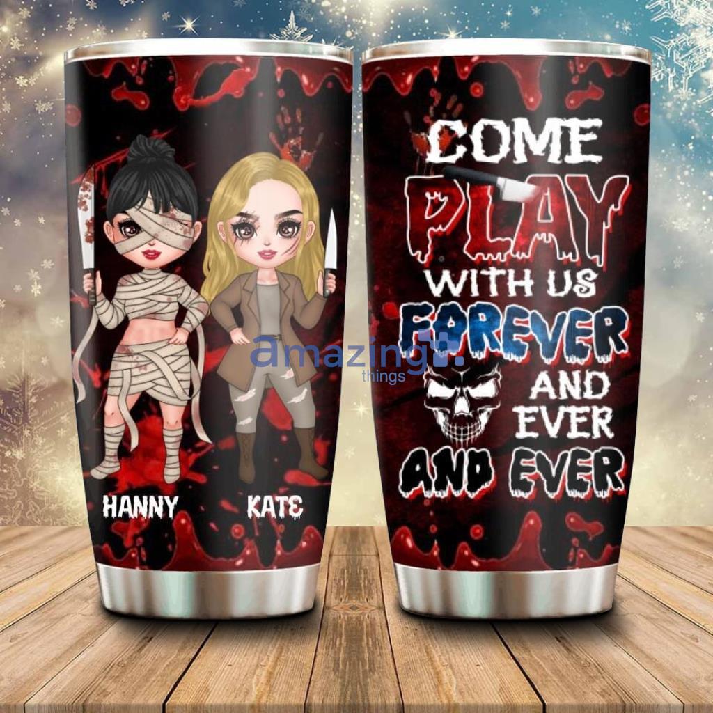 But what makes this tumbler truly special is the personalized horror besties design. Featuring a creepy and cute image of two best friends, this design can be customized with your names to create a one-of-a-kind gift.