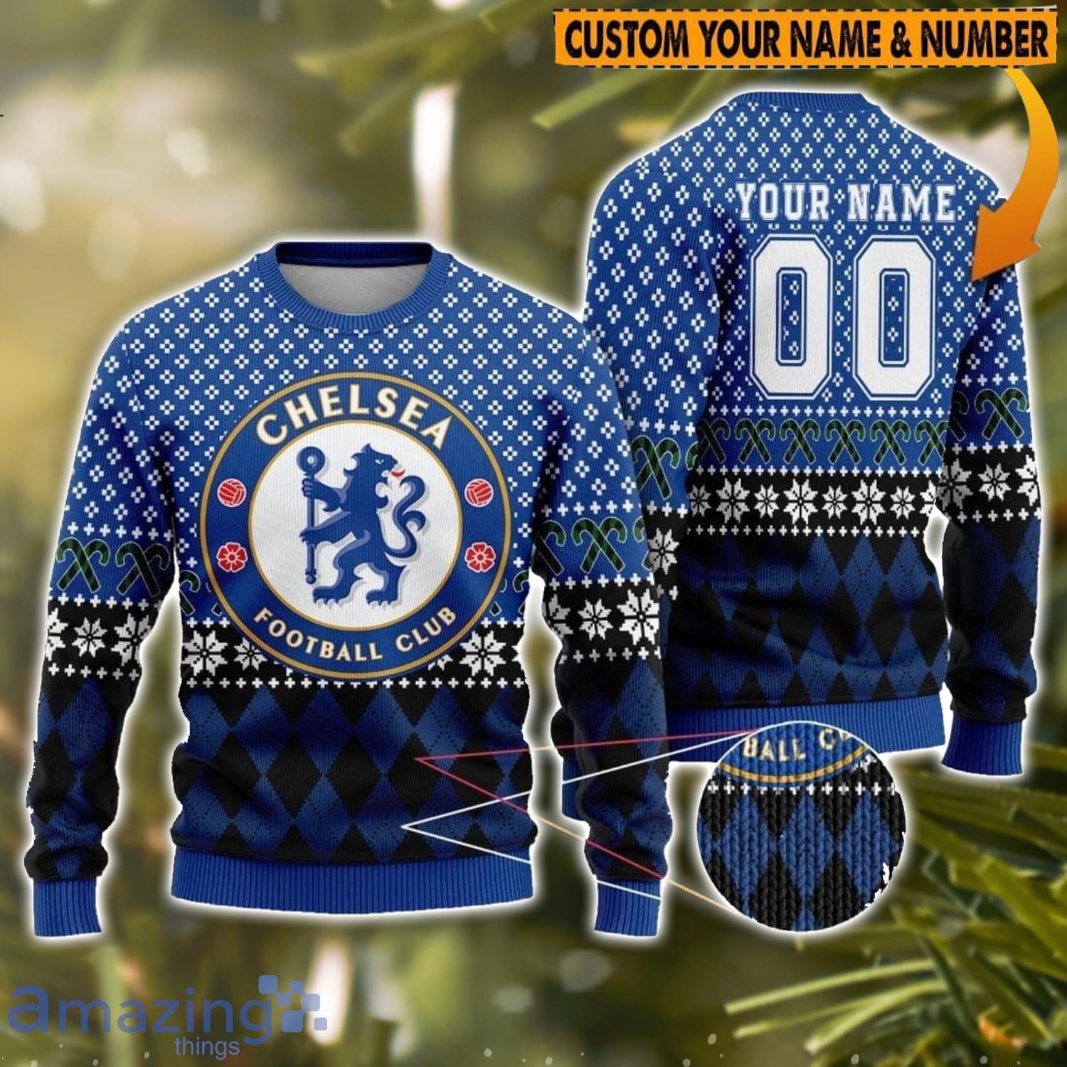 Personalized Name And Number Chelsea 3D Ugly Christmas Sweater Christmas Holiday Gift