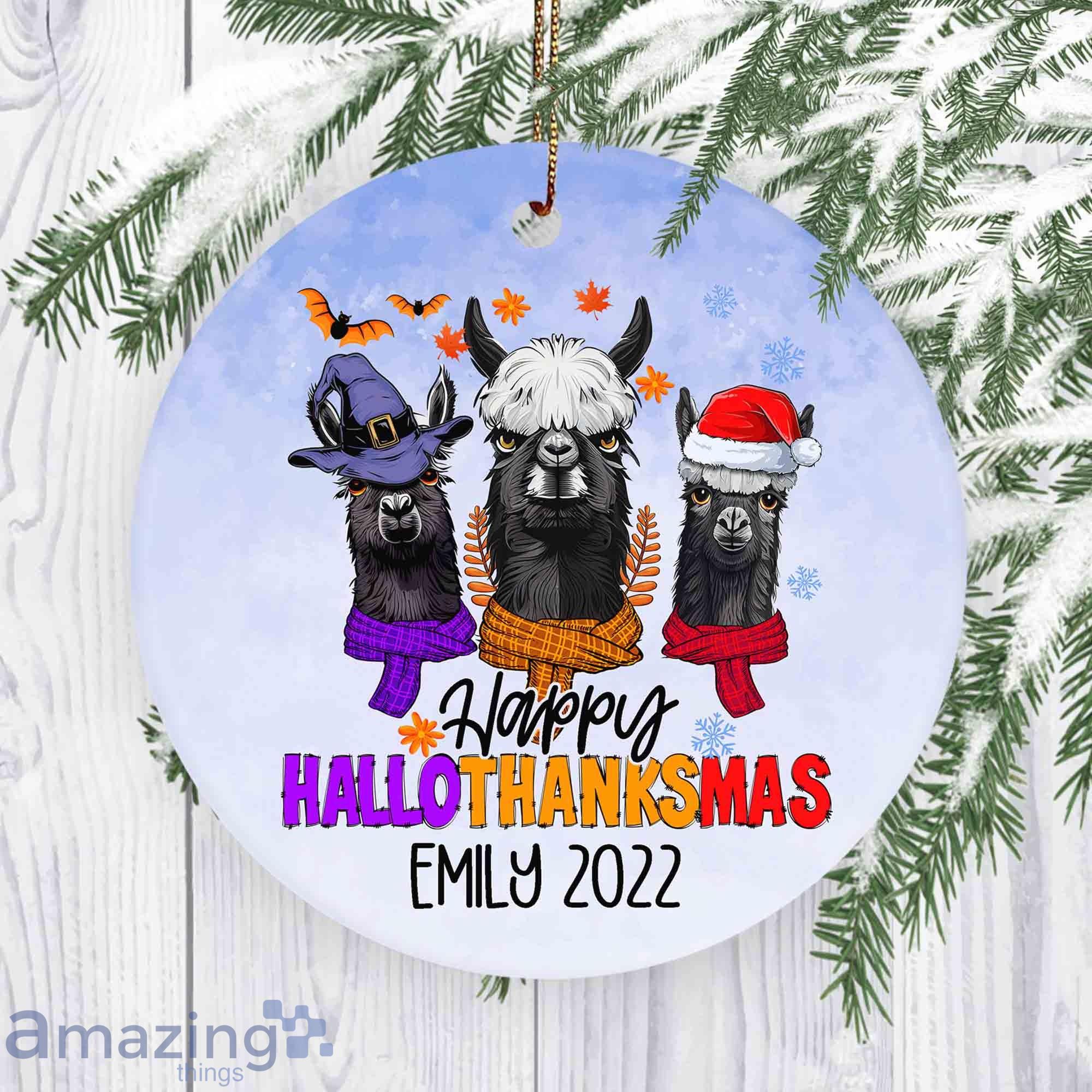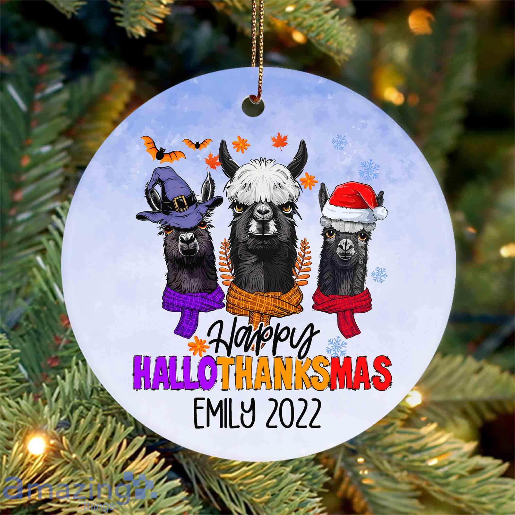 Personalized Name Happy Hallothanksmas Llamazing Ornament Halloween Thankful Christmas Llama Xmas Kid Gift Ornament Product Detail
