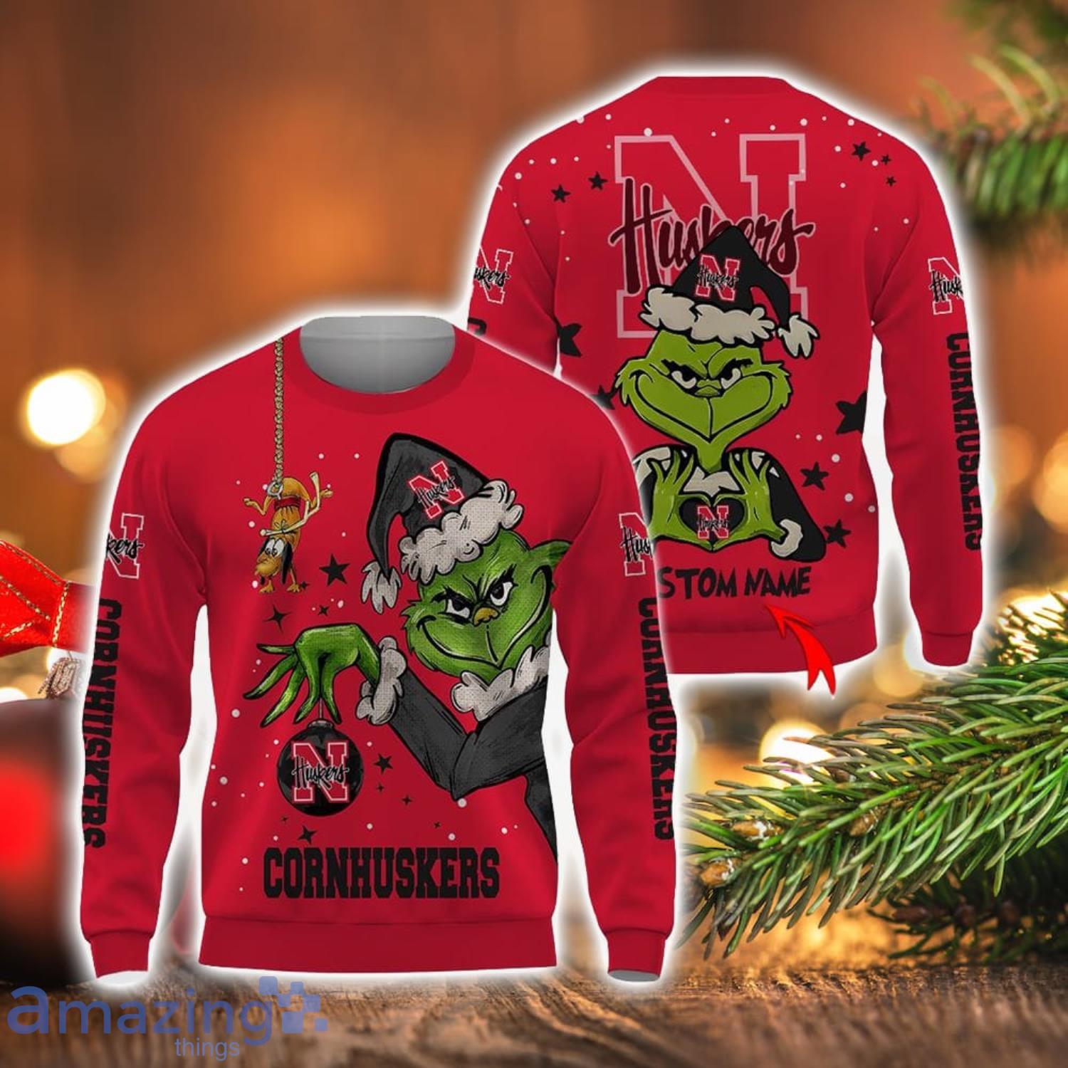 Some of the Personalized Name NCAA Nebraska Cornhuskers Football Fans Sweater Grinch Ugly Sweater Christmas Christmas Gift Ideas photos