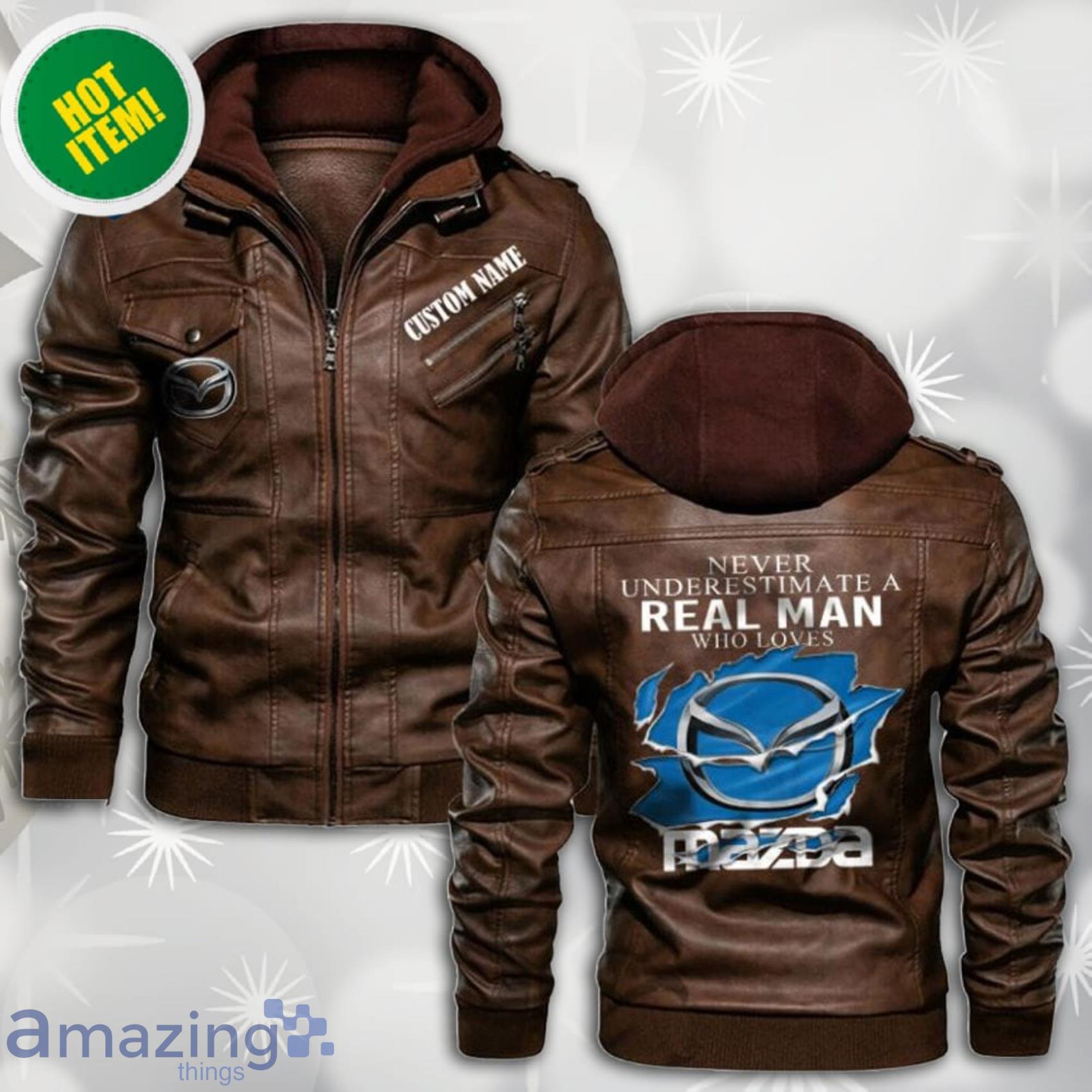 This Personalized Name Never Underestimate A Real Man Who Loves Mazda Leather Jacket is the perfect gift for the man in your life. It is made of high quality leather and is personalized with his name. This jacket is sure to keep him warm and will look great on him.