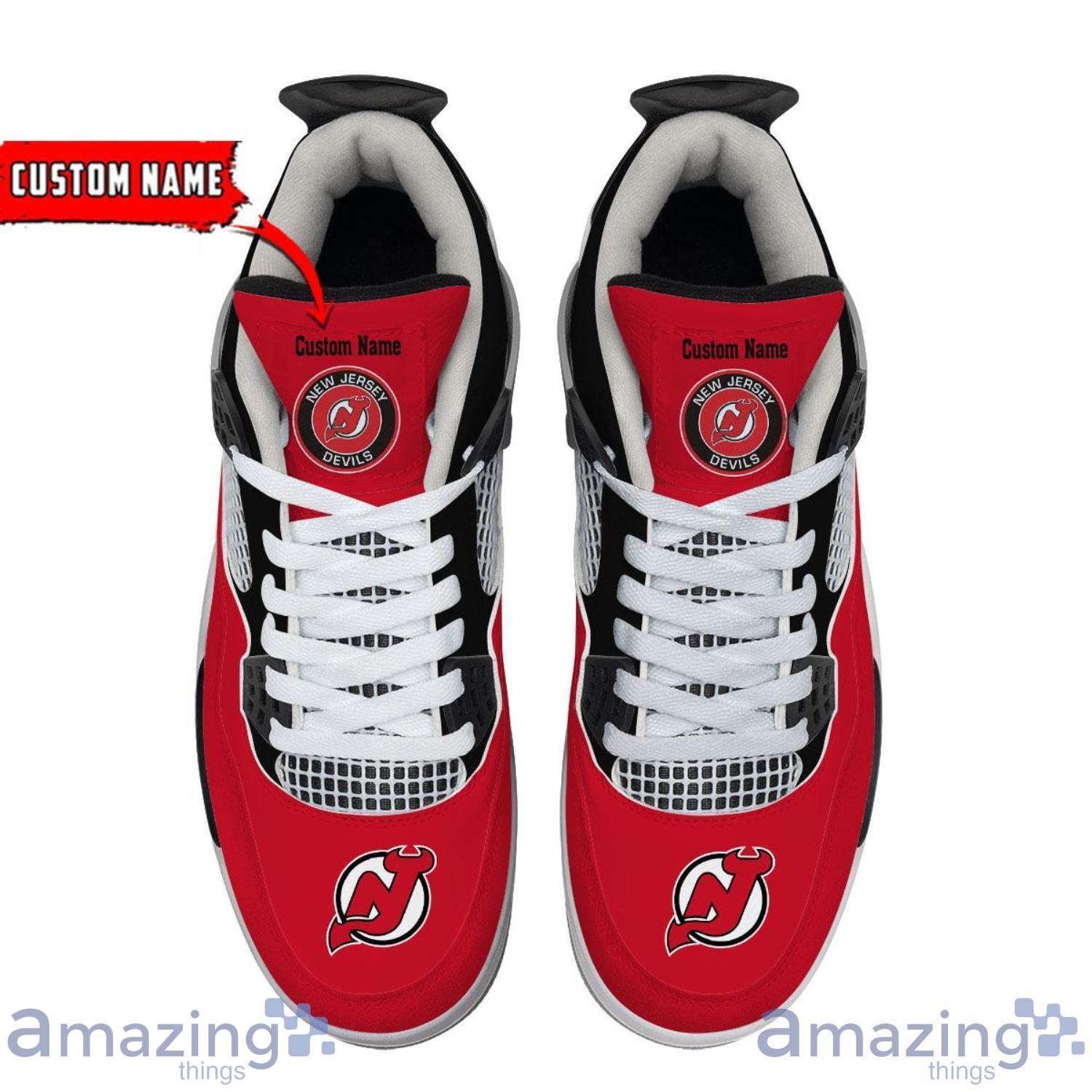 Crafted with utmost care and attention to detail, these personalized kicks allow you to add your own name, making them a truly unique expression of your individuality. The iconic Air Jordan 4 silhouette adds a touch of retro flair, while the New Jersey Devils branding takes your sneaker game to a whole new level.